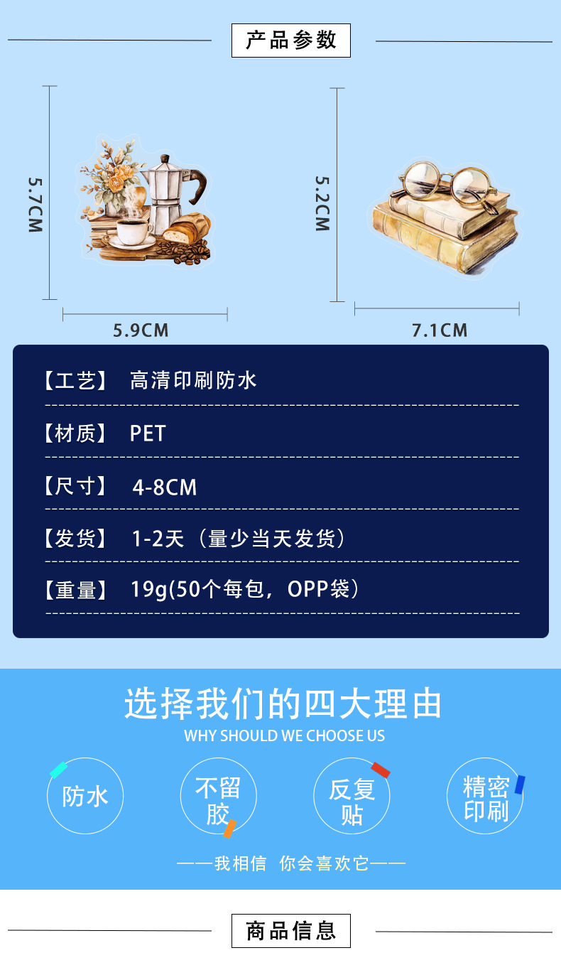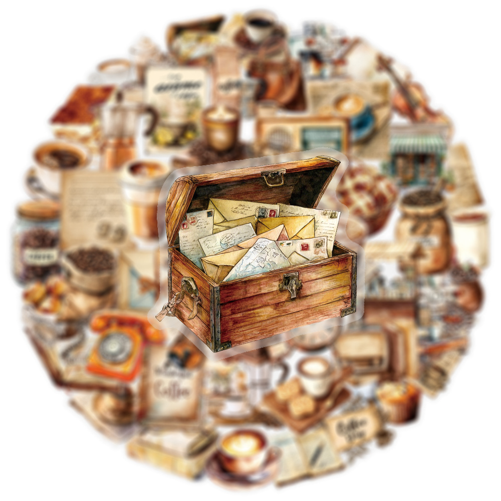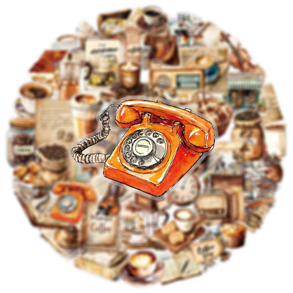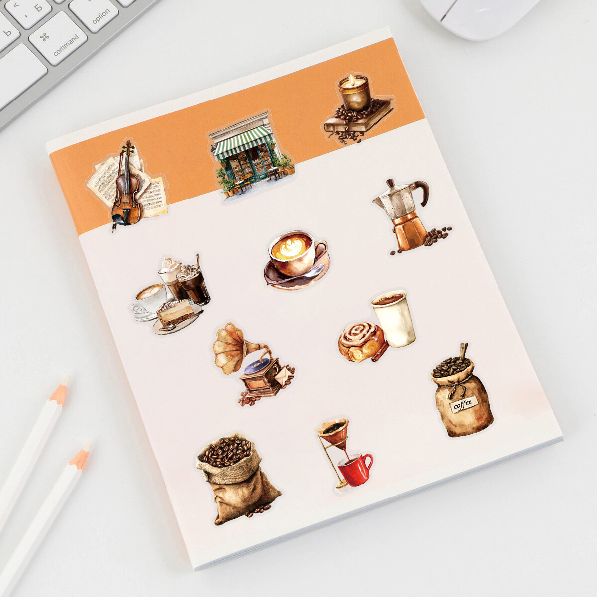 50 레트로 커피 스티커 핸드북 일기 휴대 전화 기타 스케이트 보드 컴퓨터 워터 컵 방수 데스크탑 장식 스티커