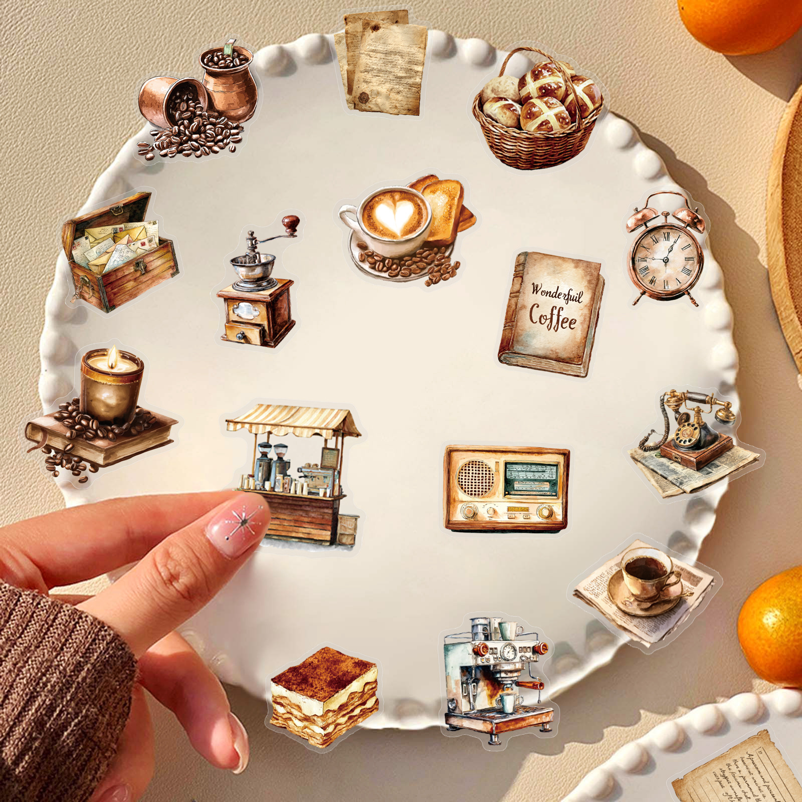 50 레트로 커피 스티커 핸드북 일기 휴대 전화 기타 스케이트 보드 컴퓨터 워터 컵 방수 데스크탑 장식 스티커스토어 가기