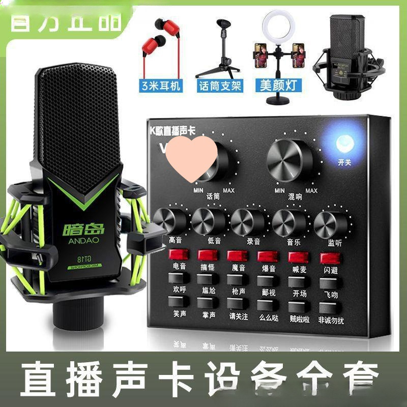 사운드 카드 세트 앵커 라이브 방송 장비 사운드 카드 휴대 전화 노래 마이크 마이크 전체 노래방 세트스토어 가기