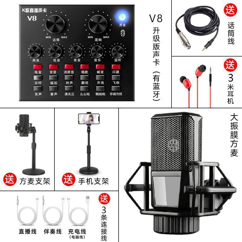 • V8 사운드 카드 + 대형 다이어프램 사각 마이크 세트【】