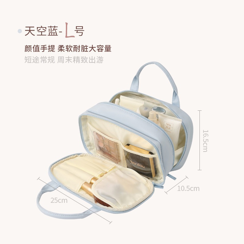 새로운 휴대용 3층 화장품 가방, 고급스럽고 대용량 여행 화장품 다기능 휴대용 방수 보관 가방