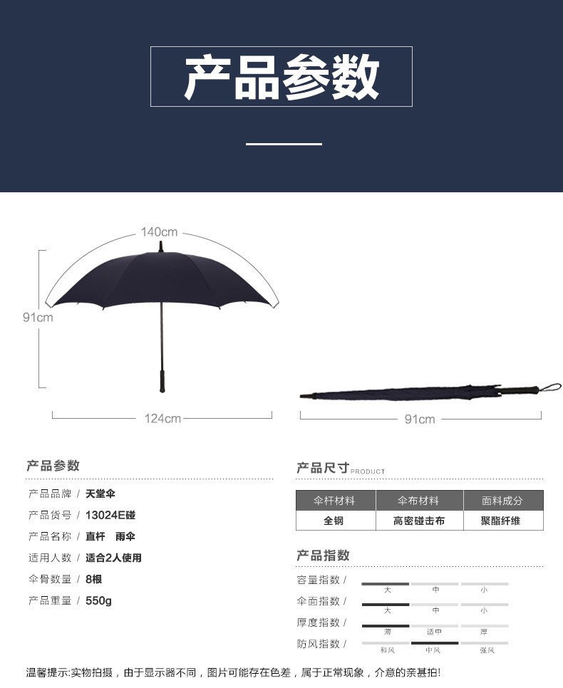 Paradise Umbrella 13024E 스틸 뼈 직선 손잡이 우산 초대형 강화 더블 비즈니스 맞춤형 광고 인쇄 로고스토어 가기