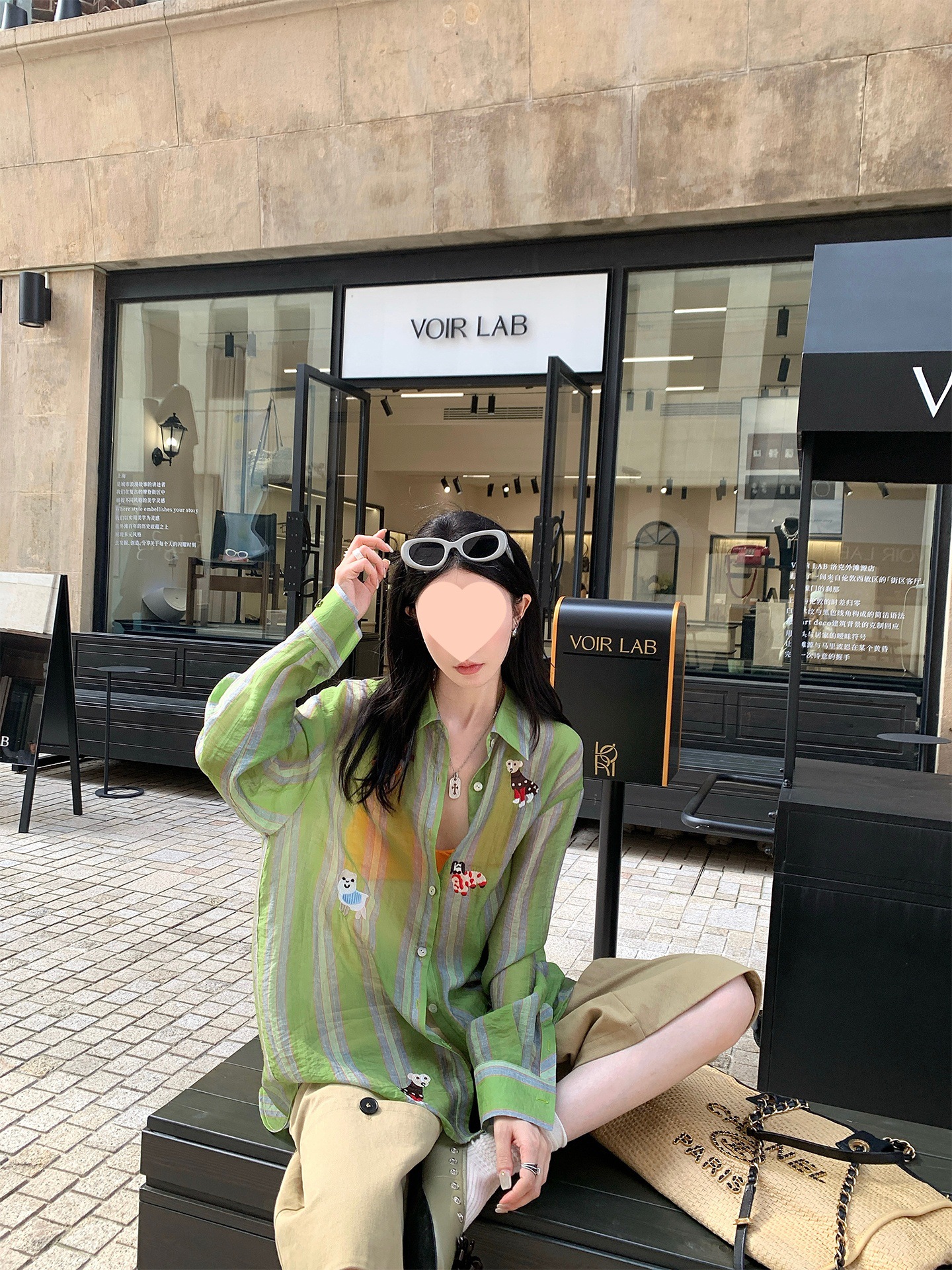 여성용 오우양 강아지 자수 경량 자외선 차단 셔츠, 여름 디자인, 틈새 복고풍 셔츠, 루즈한 탑스토어 가기