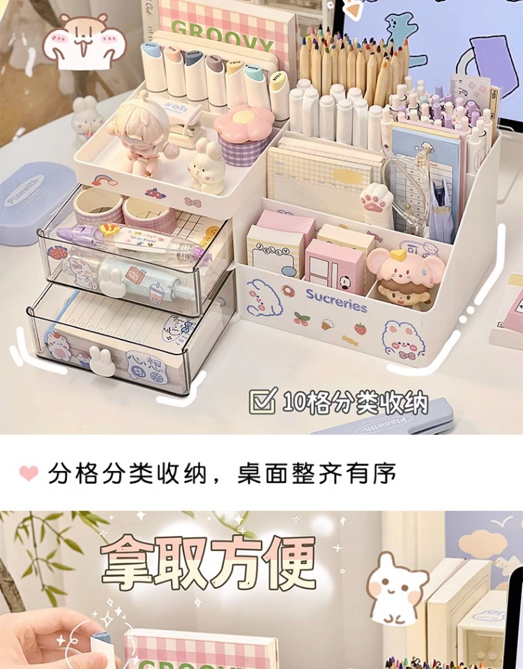 데스크탑 학습 테이블 보관함 사무실 정리함 문구 책상 펜 홀더 데스크탑 보관함 귀여운 서랍형