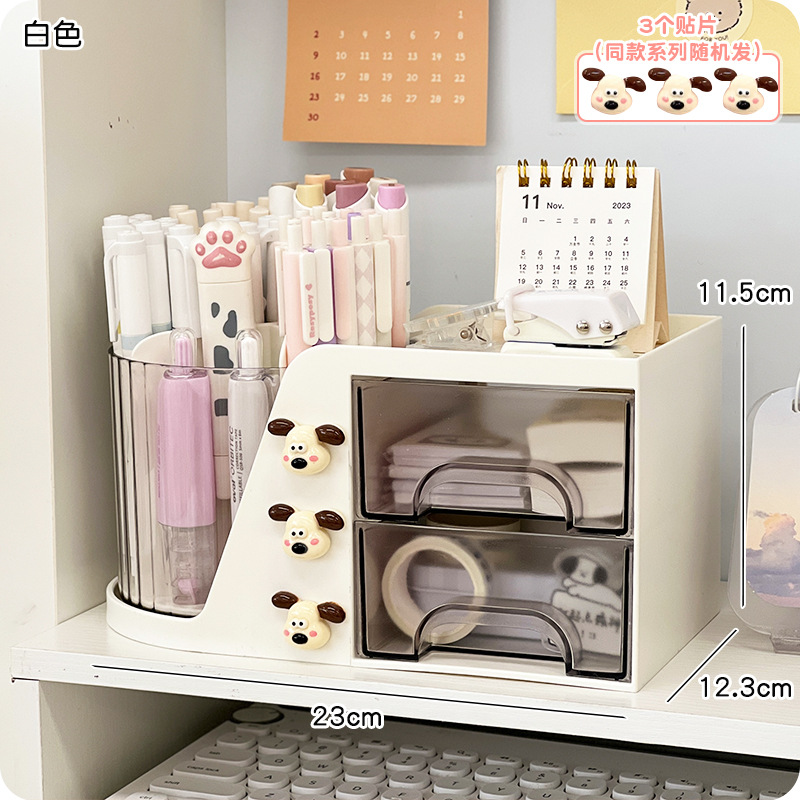 • 흰색 회전 펜 홀더 모델 [더블 드로우/6 그리드] 무료 패치