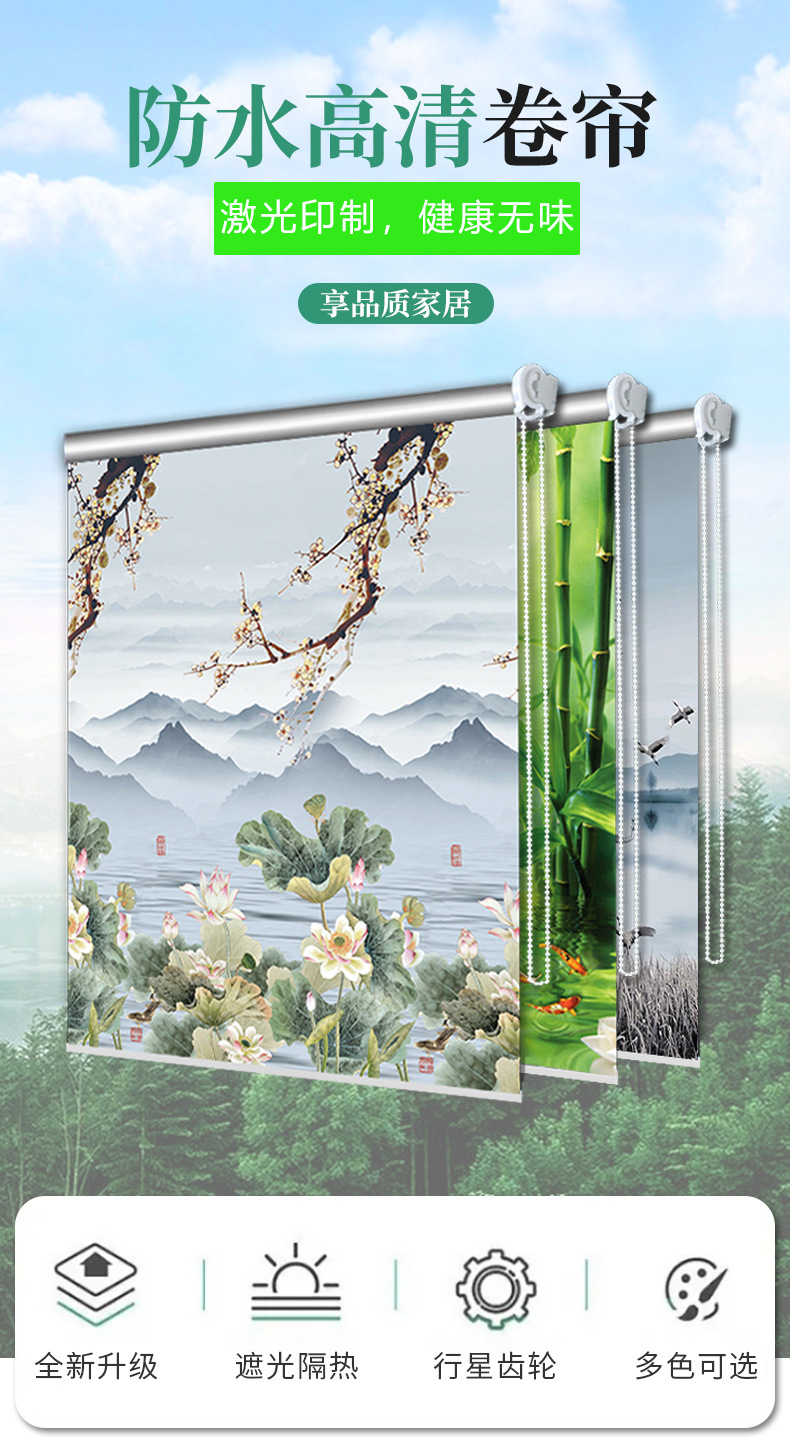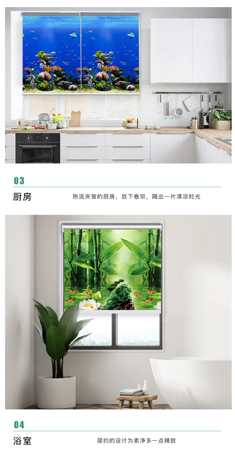 롤 풀 커튼, 펀치 프리 지퍼 리프트, 블랙아웃, 침실 발코니, 주방 블라인드, 욕실 방수스토어 가기