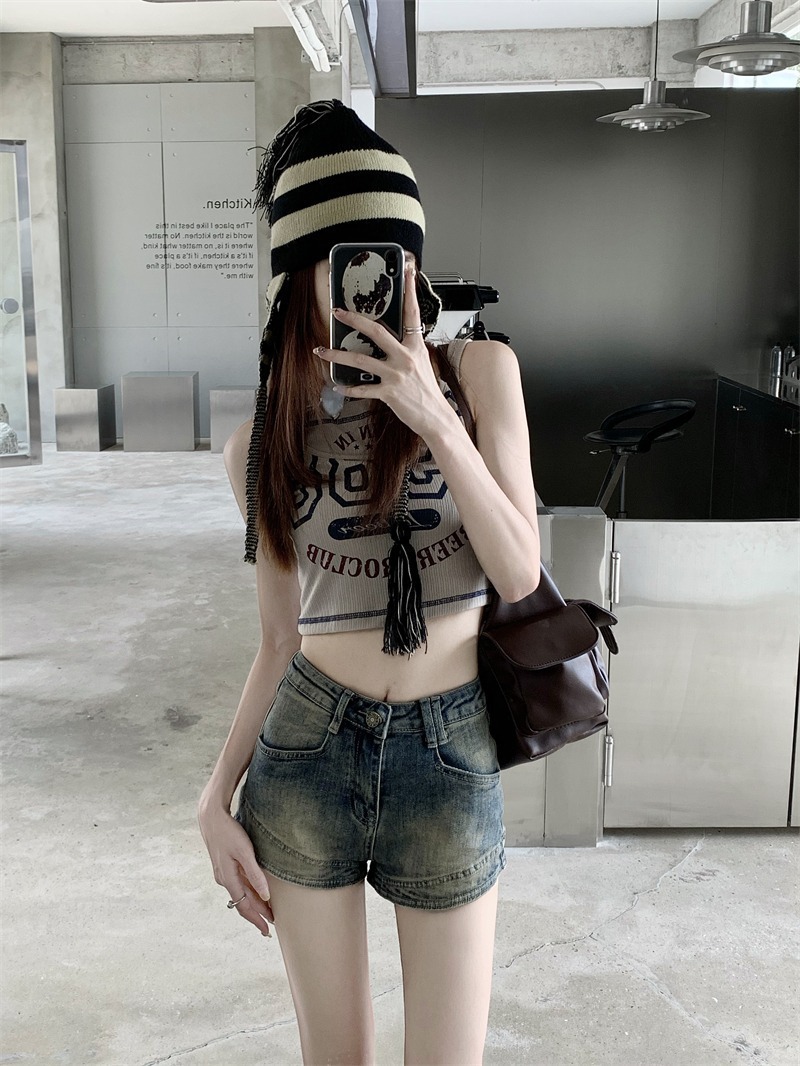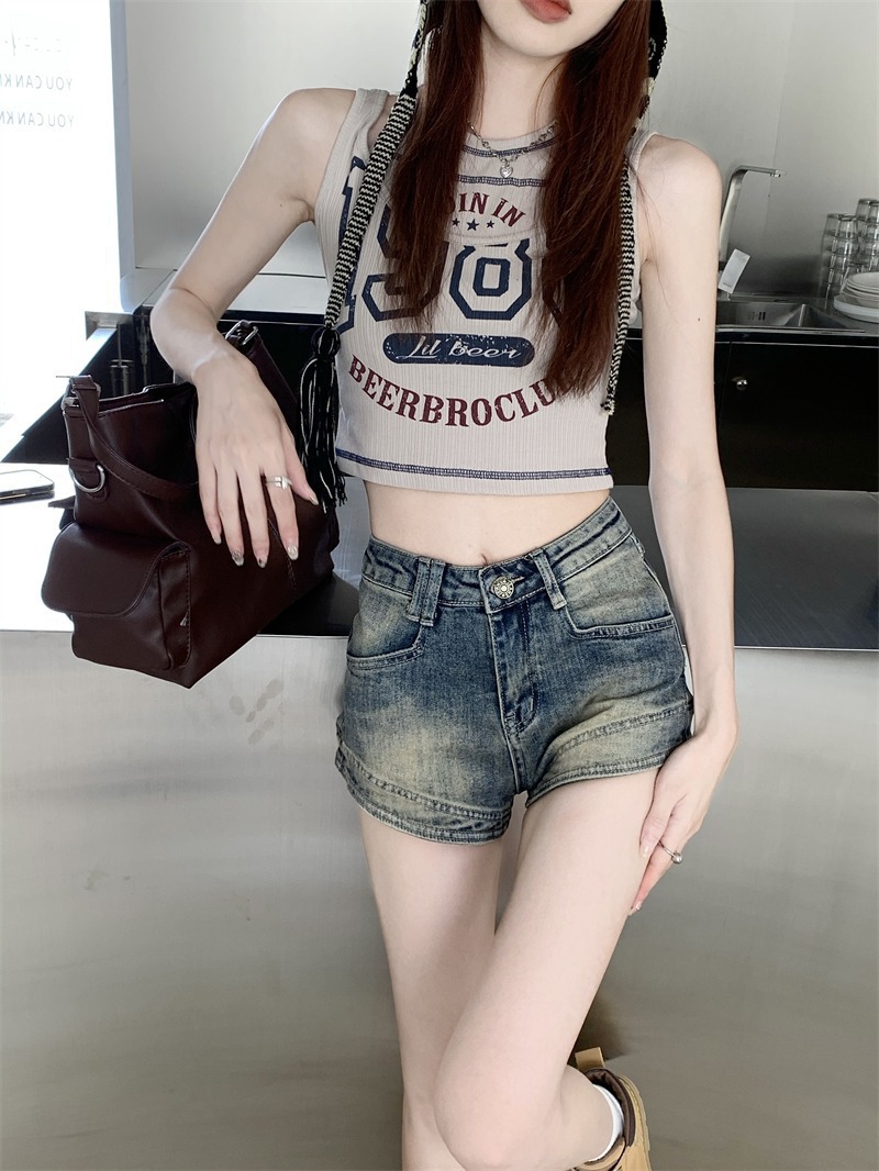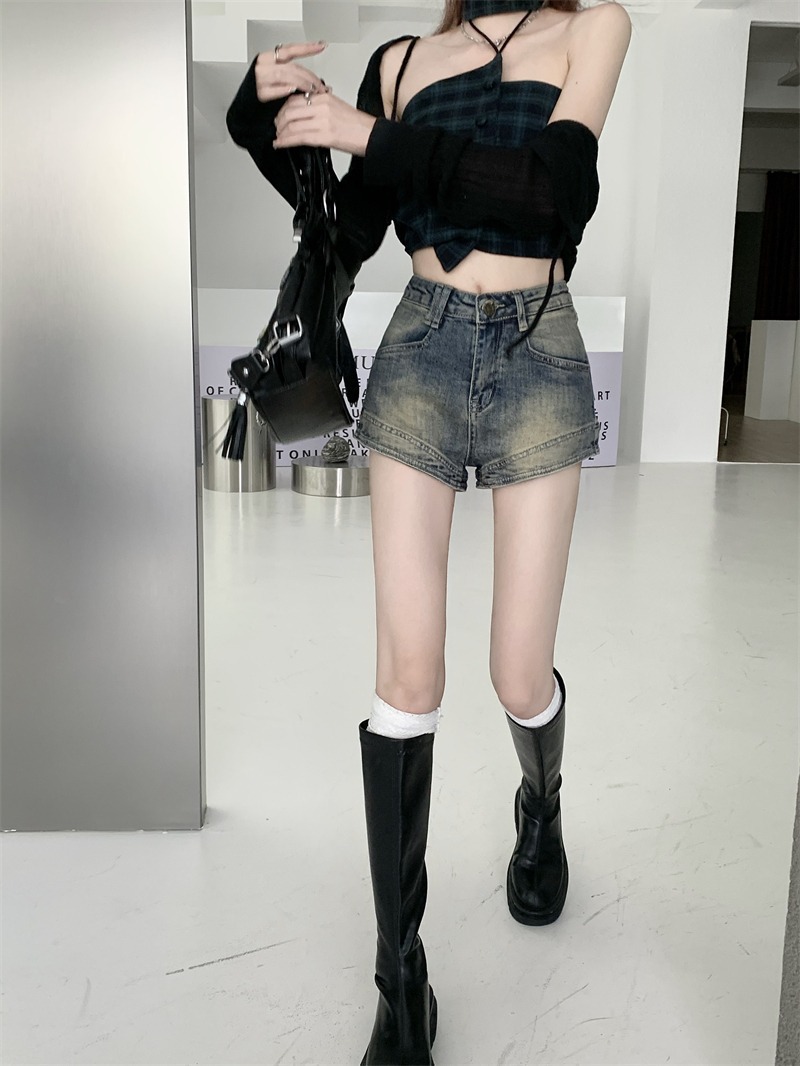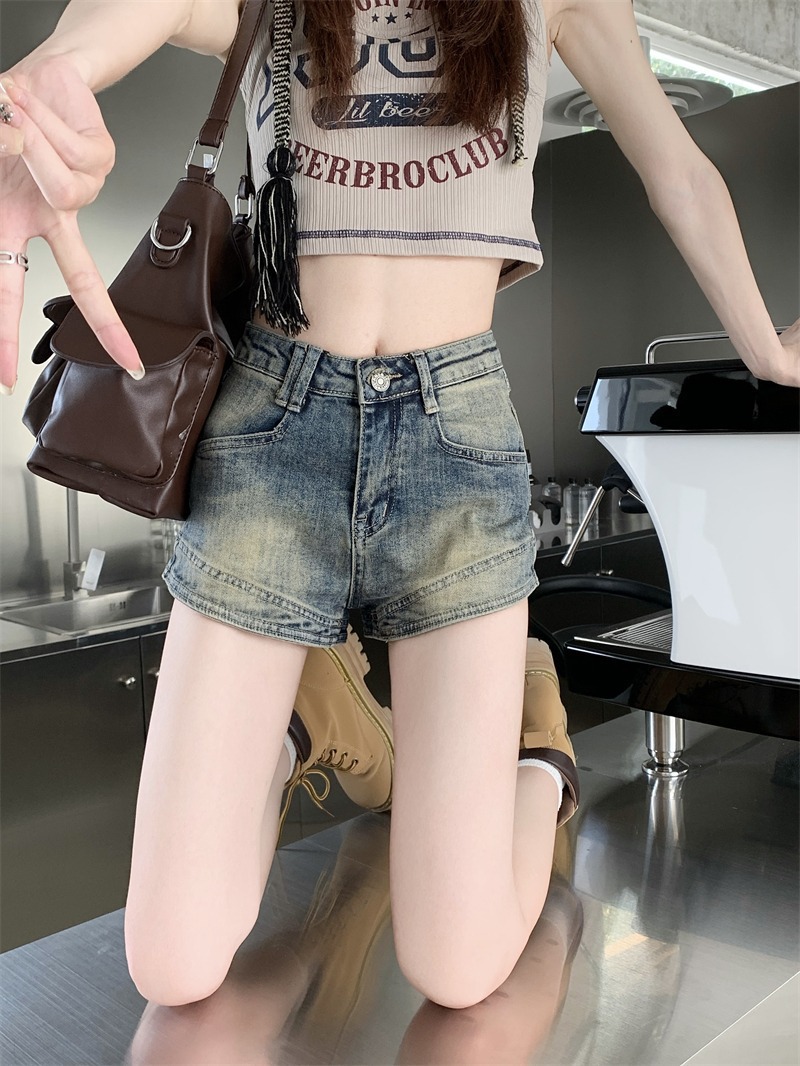 여성용 디스트레스드 레트로 데님 반바지 여름 아메리칸 핫걸 핫팬츠 와이드 레그 울트라 쇼트 팬츠 하이웨이스트 스트레이트 A라인 팬츠스토어 가기