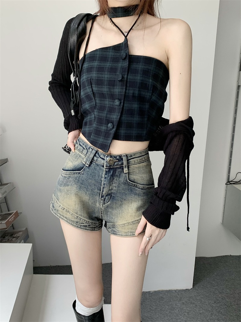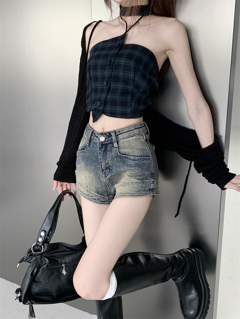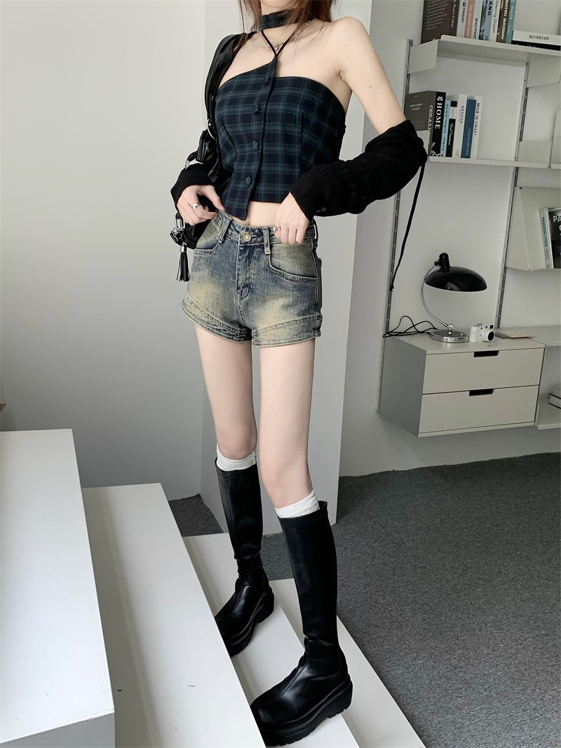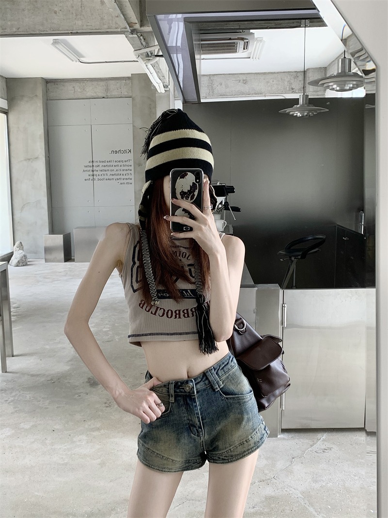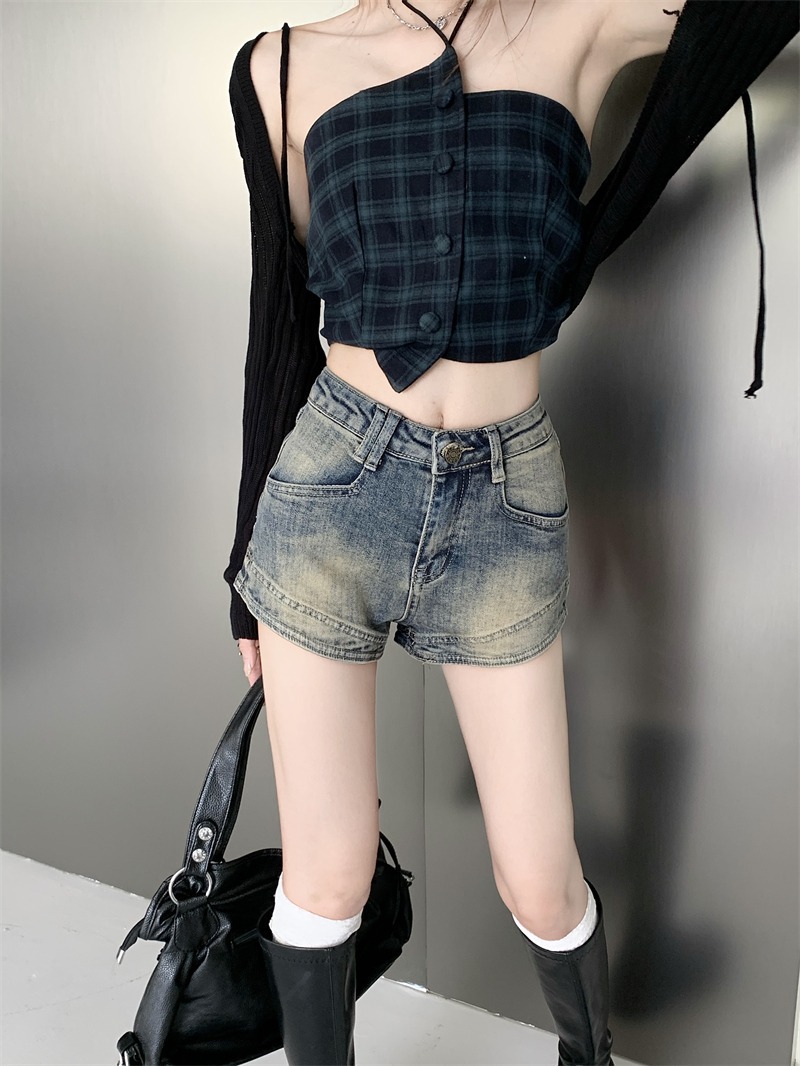 여성용 디스트레스드 레트로 데님 반바지 여름 아메리칸 핫걸 핫팬츠 와이드 레그 울트라 쇼트 팬츠 하이웨이스트 스트레이트 A라인 팬츠스토어 가기