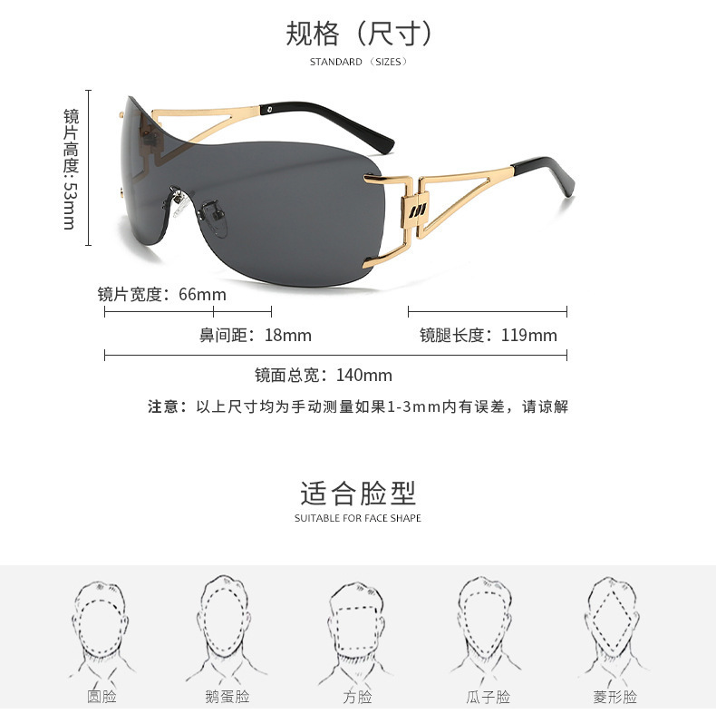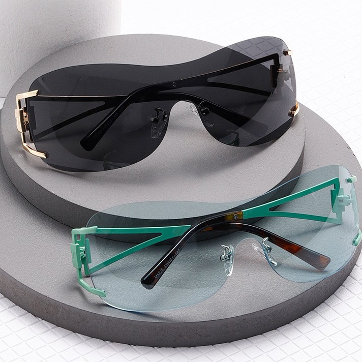 2025년 새로운 국경 간 프레임리스 엣지 컷 올인원 선글라스 스트리트 슈팅 슬리밍 안티 UV 선글라스 유럽 및 미국 패션스토어 가기