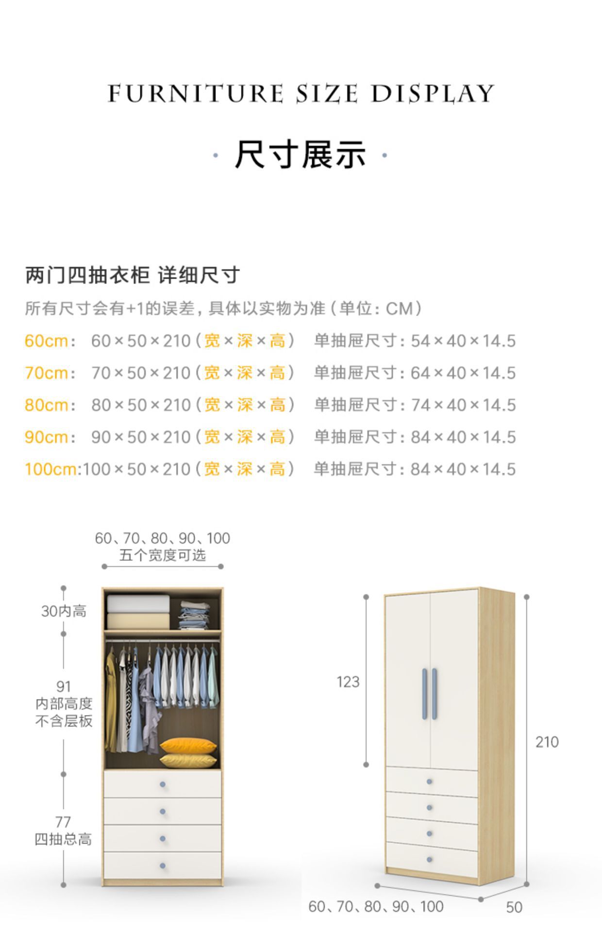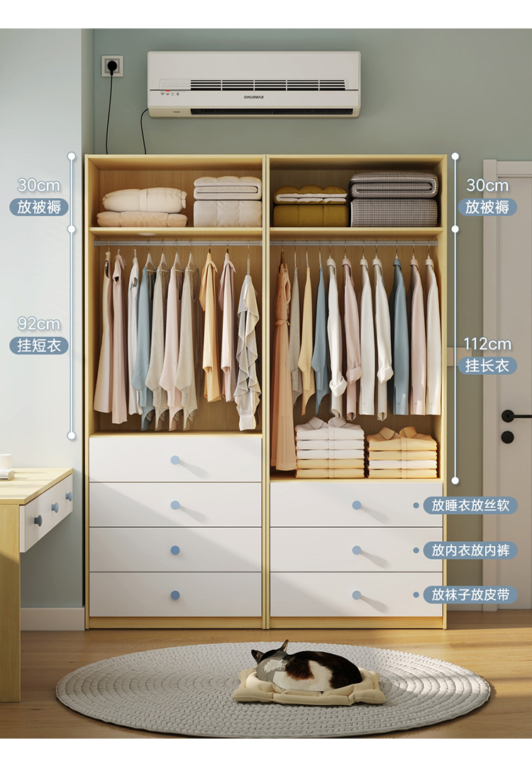 어린이 옷장 작은 아파트 공간 절약 작은 방 북유럽 단단한 나무 홍콩 침실 70cm 1.0m 와이드 옷장 90p^