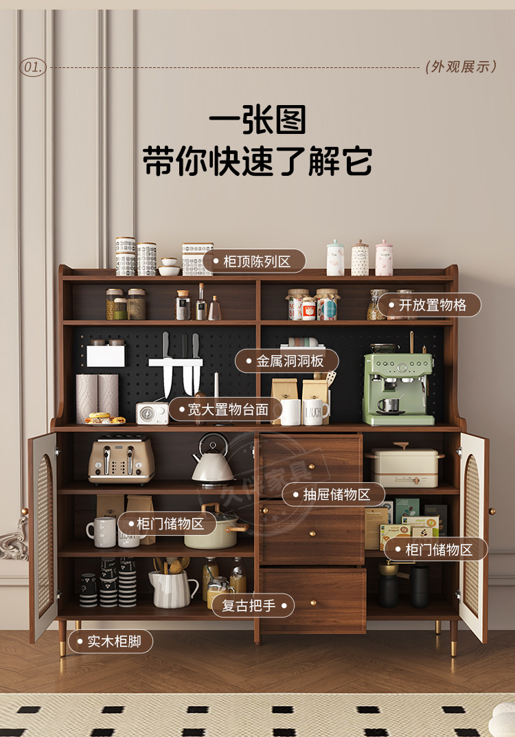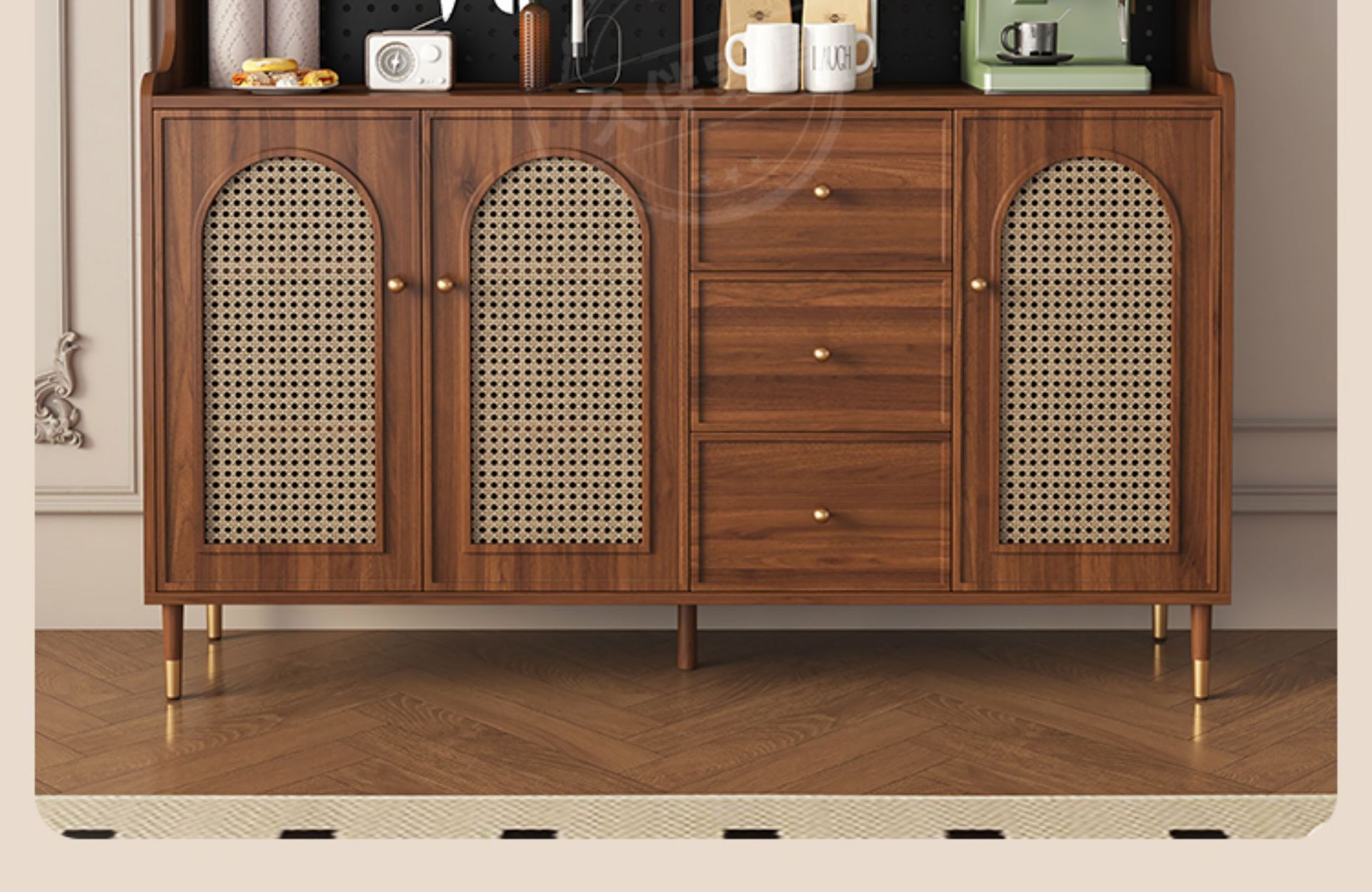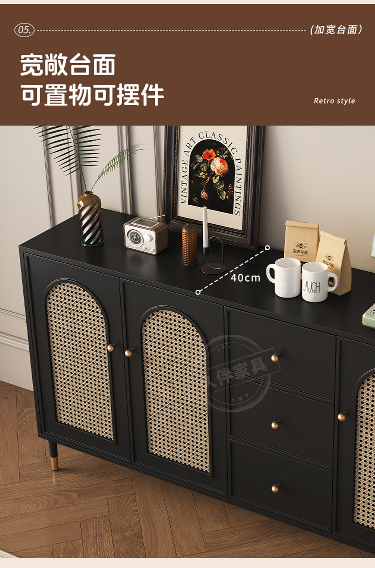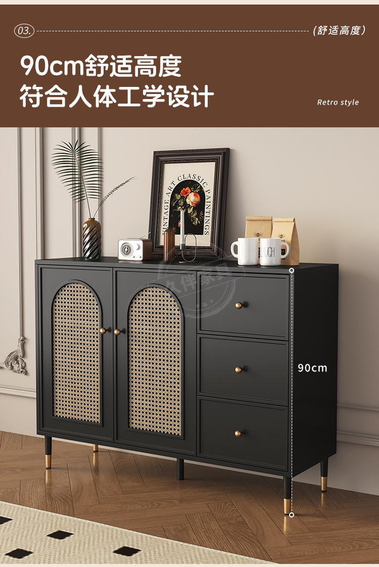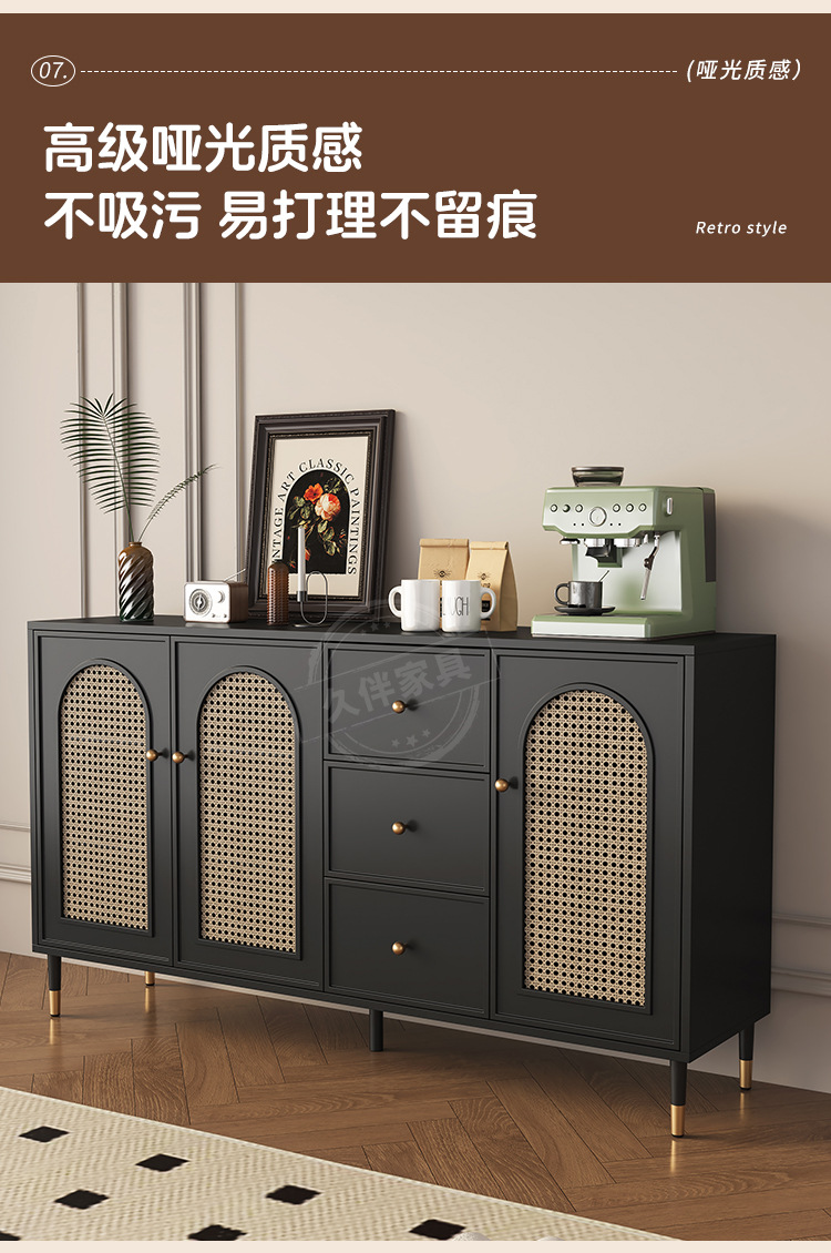 벽에 붙은 프렌치 사이드보드, 일체형 수납장, 거실 티보드, 등나무 커피 사이드보드, 주방 수납장 Tω