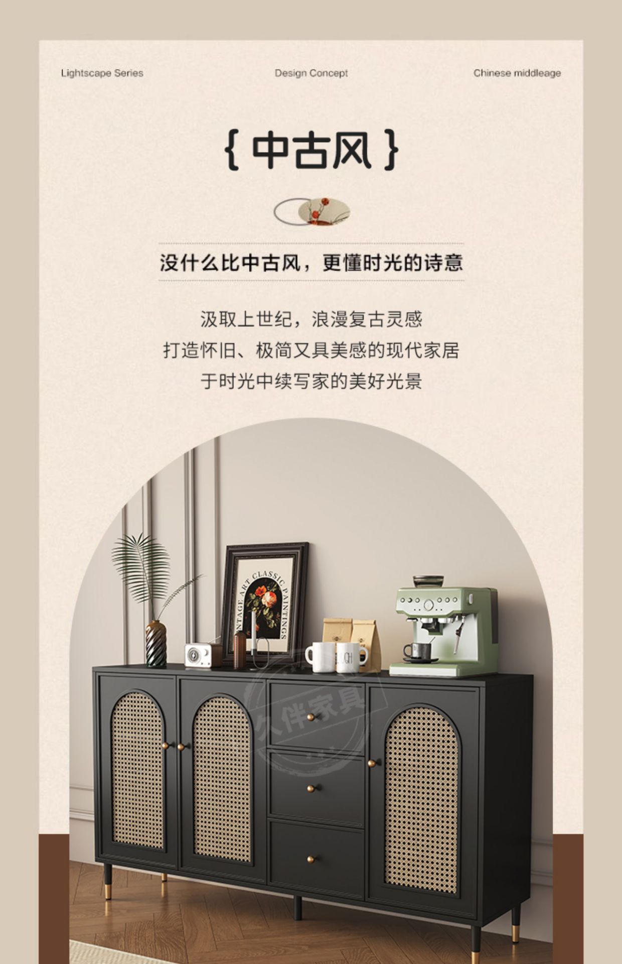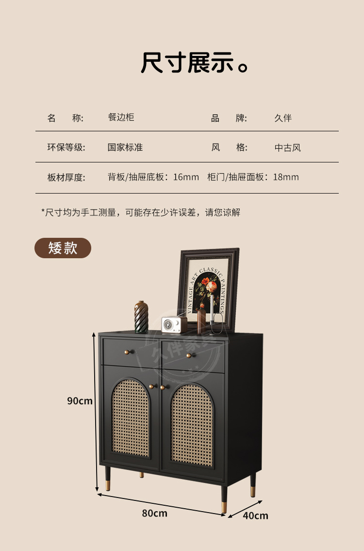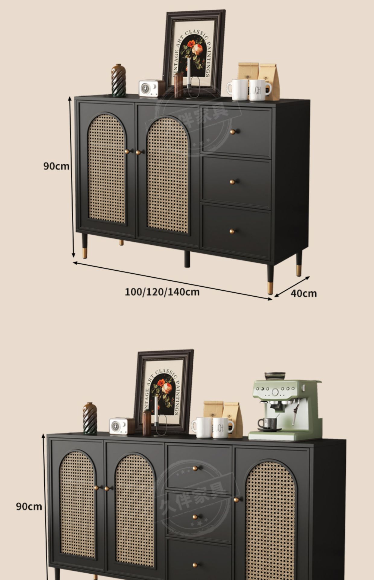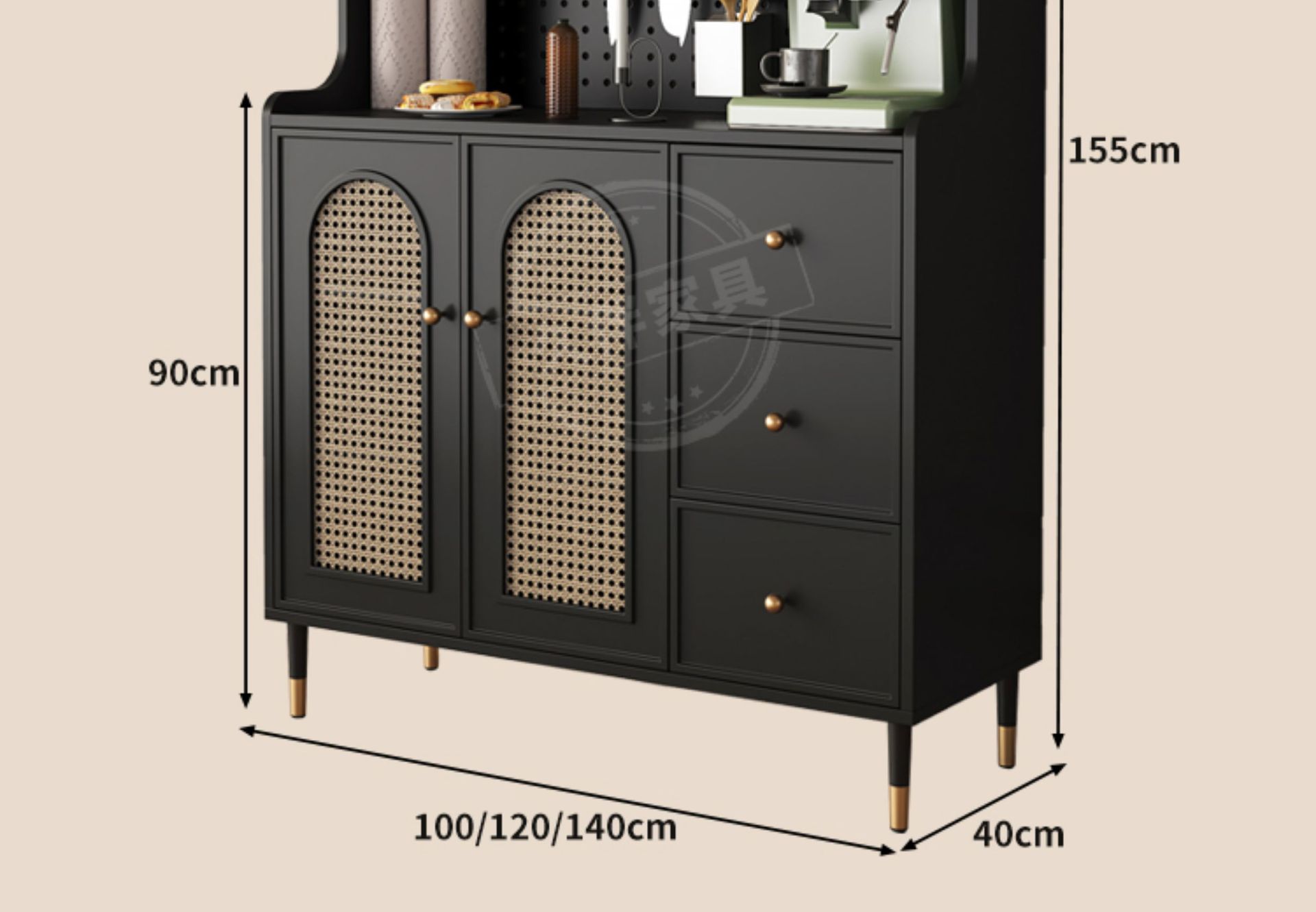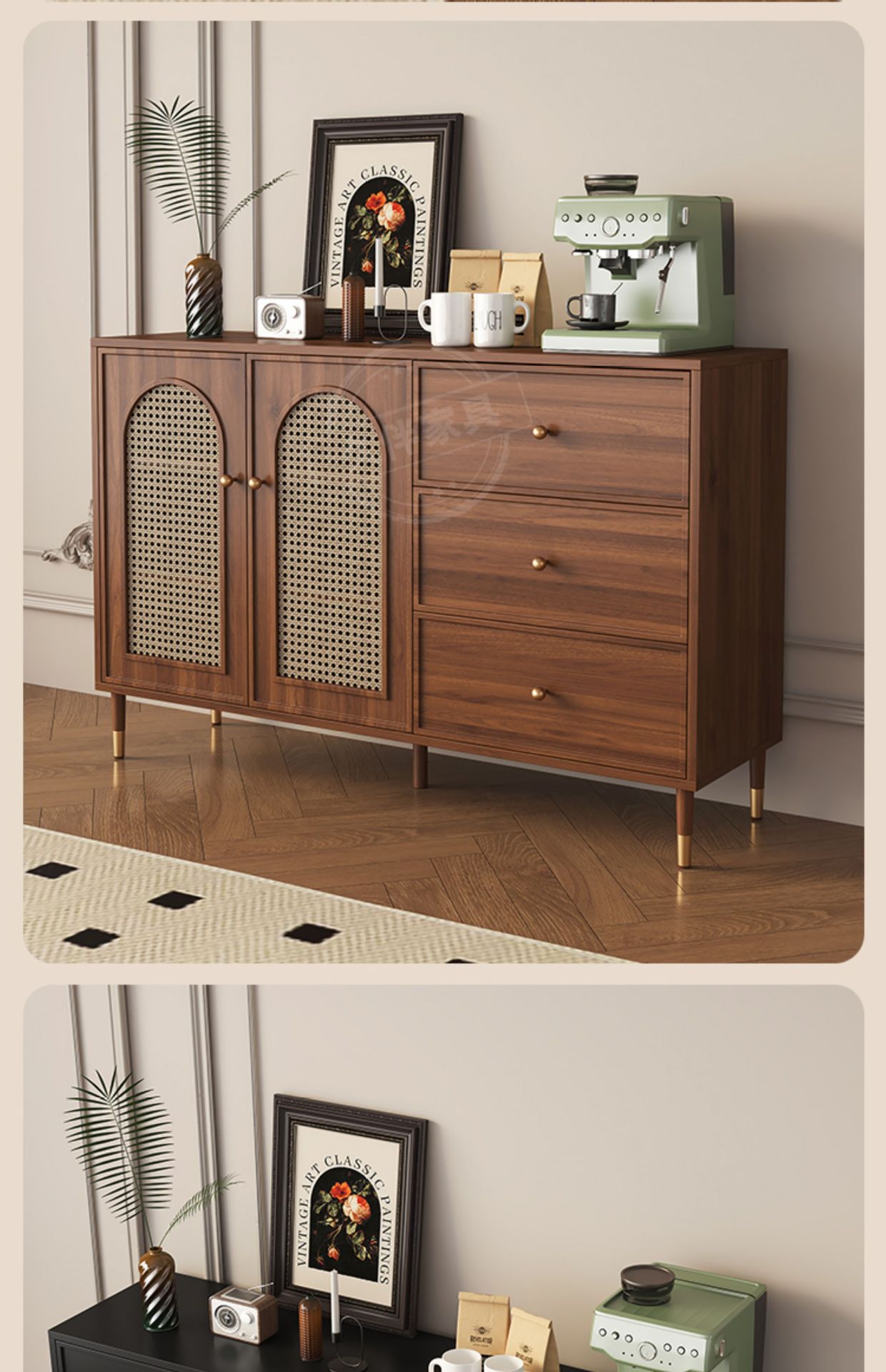 벽에 붙은 프렌치 사이드보드, 일체형 수납장, 거실 티보드, 등나무 커피 사이드보드, 주방 수납장 Tω