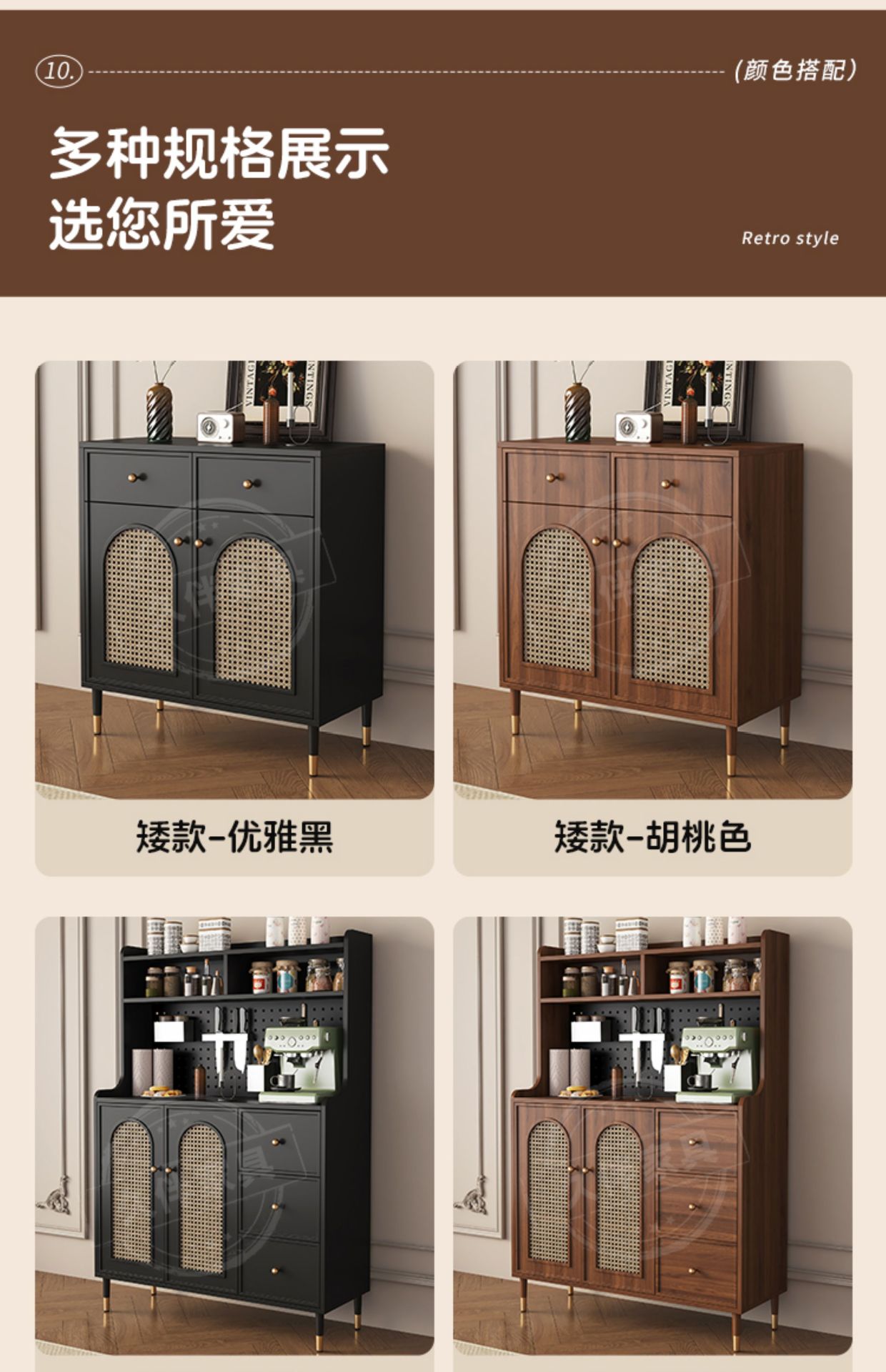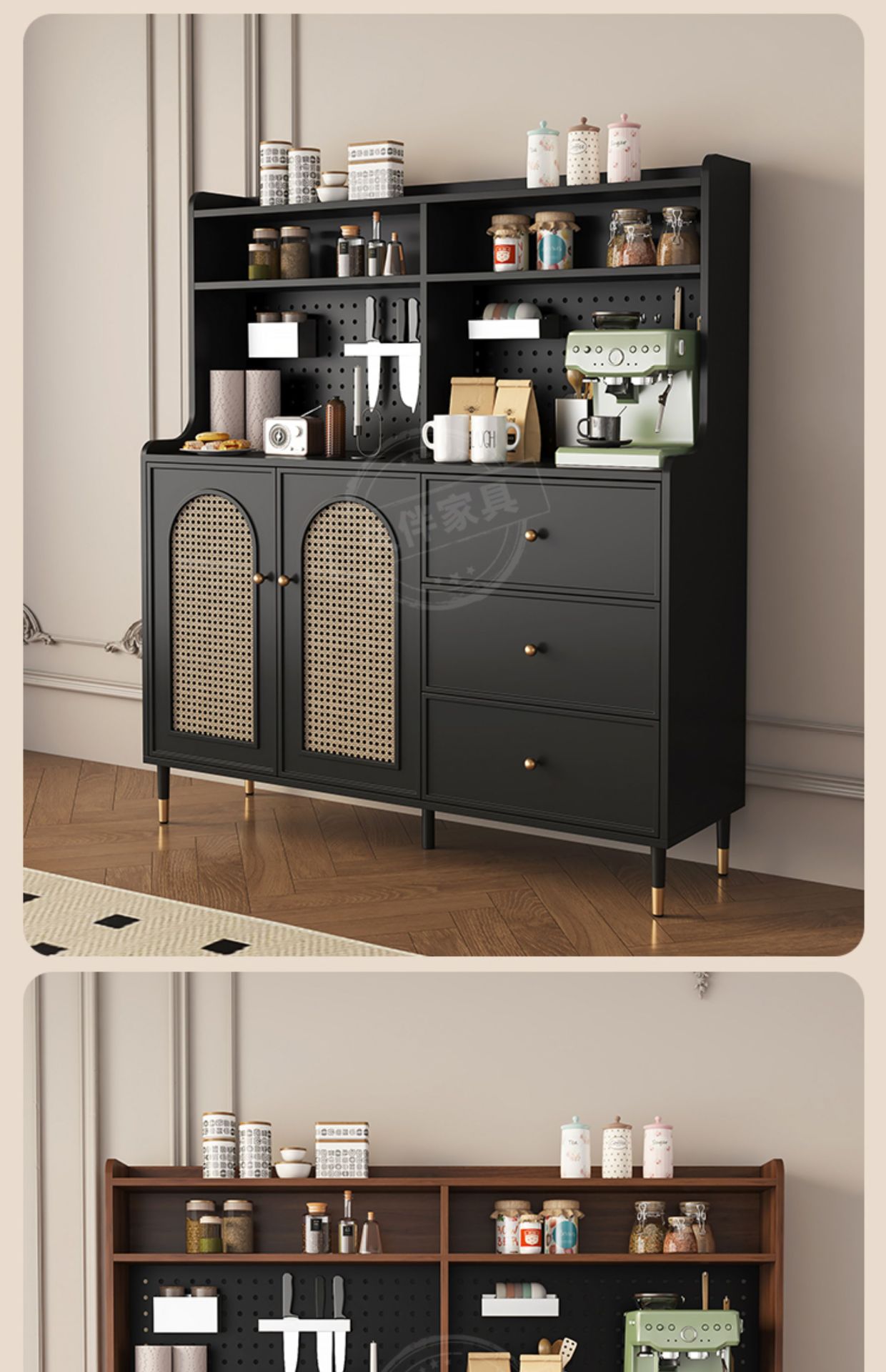 벽에 붙은 프렌치 사이드보드, 일체형 수납장, 거실 티보드, 등나무 커피 사이드보드, 주방 수납장 Tω스토어 가기