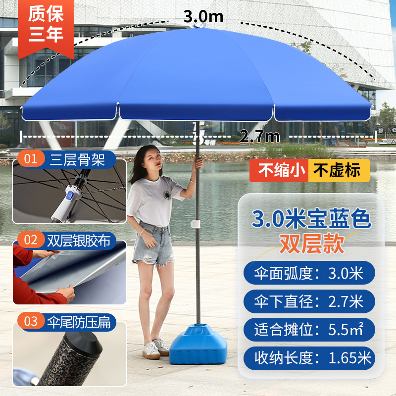 • [이중골 16본] 사파이어 블루 3.0m [이중 은색 플라스틱 우산 표면] + 두꺼운 우산봉