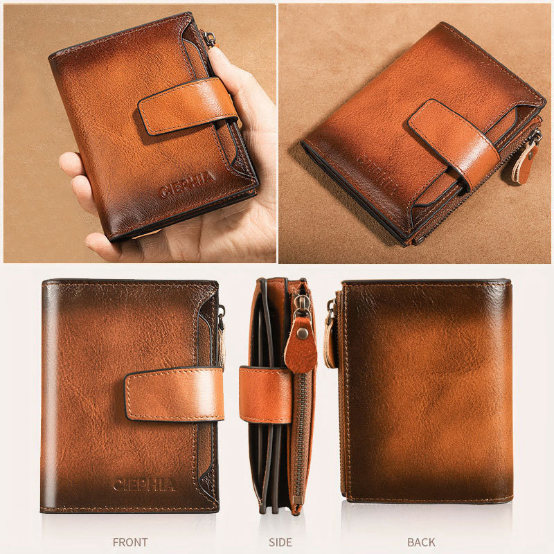 CIEPHIA 레트로 남성용 정품 가죽 지갑 C 브랜드 국경 간 핫 세일 다기능 도난 방지 지퍼 동전 지갑