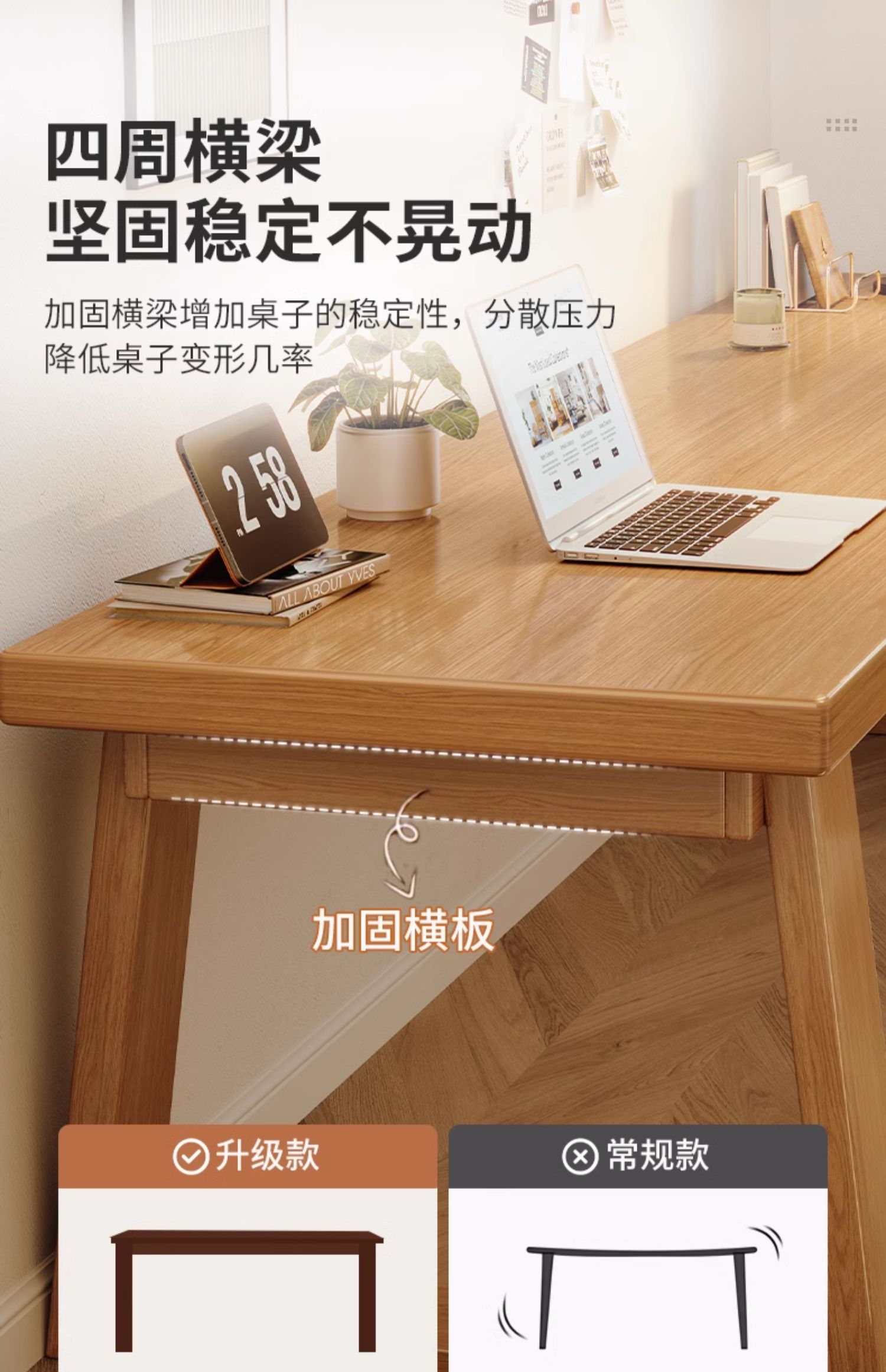 • 【口字形桌腿】160cm原木色【3cm加厚桌面+10cm加粗桌腿】 德邦/京东送货上楼