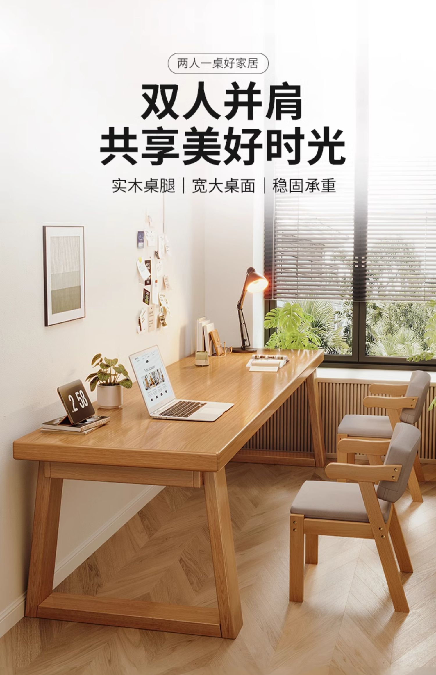 • 【双人位️实木椅组合】160cm原木色 德邦/京东送货上楼
