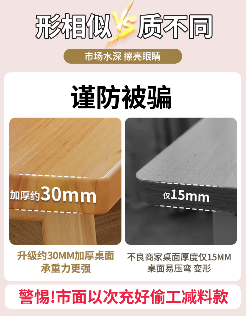 • 【口字形桌腿】180cm原木色【3cm加厚桌面+10cm加粗桌腿】 德邦/京东送货上楼