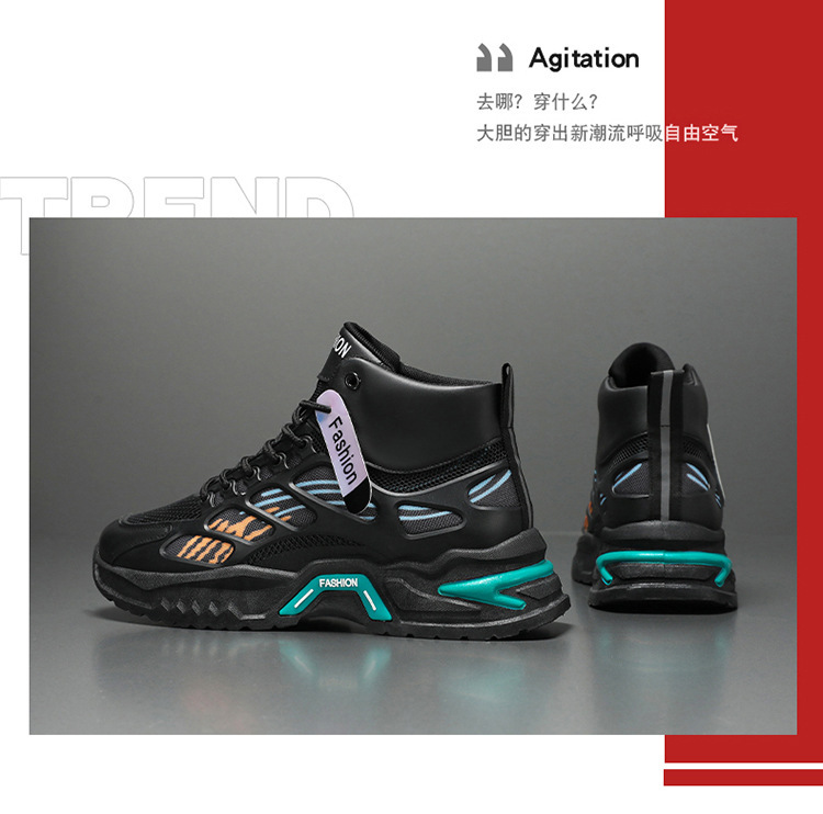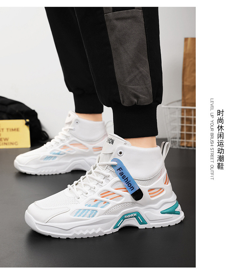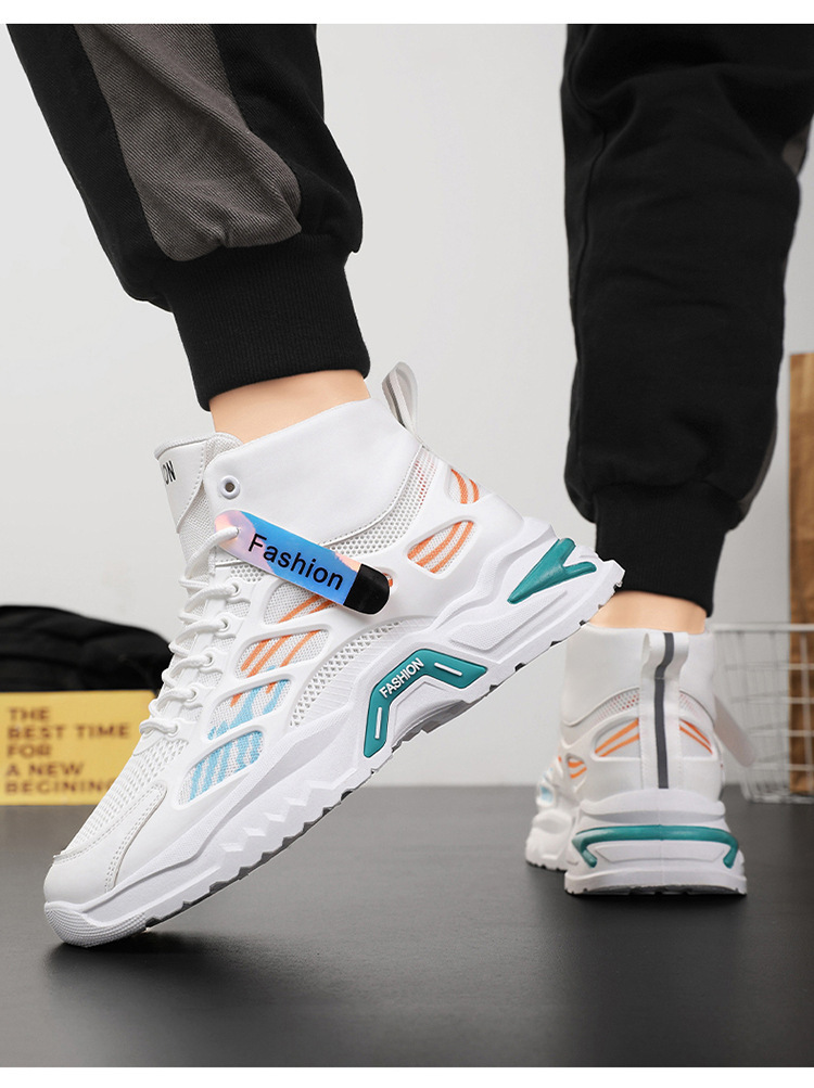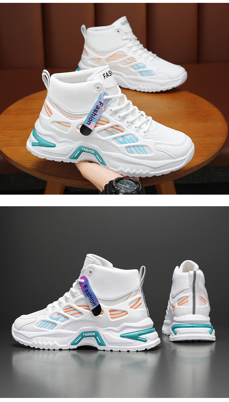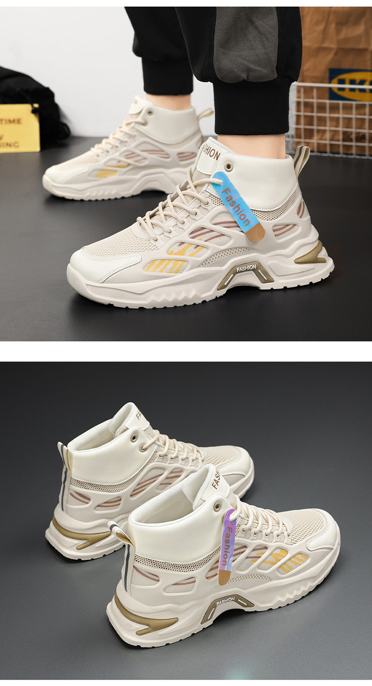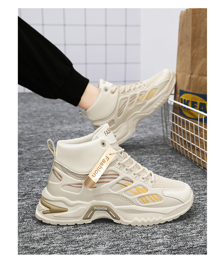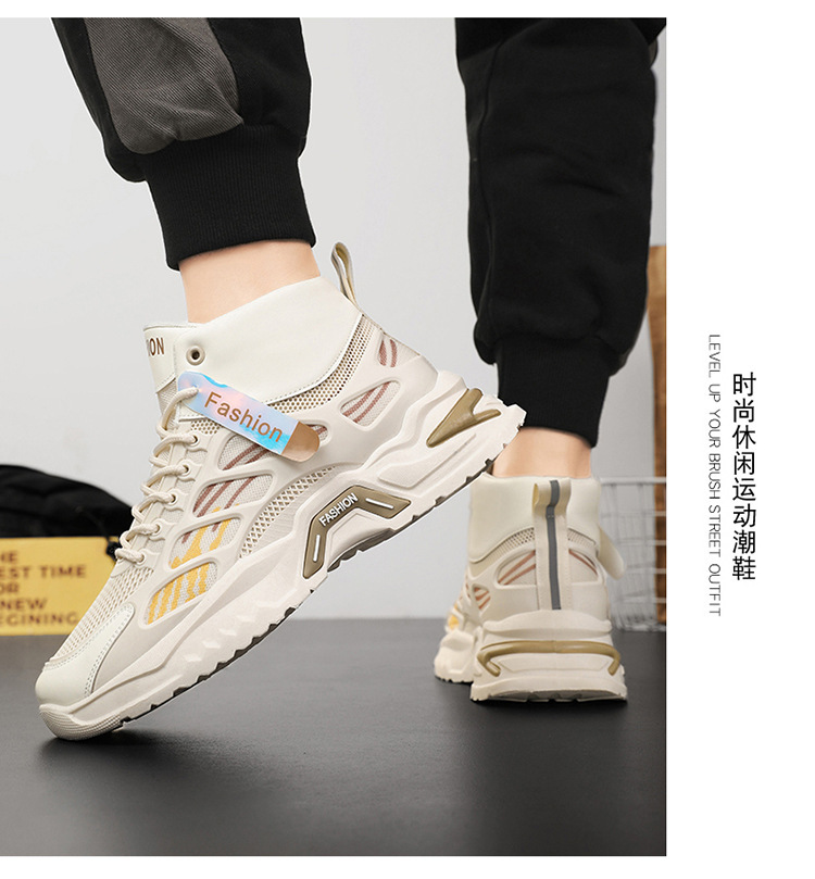 가을 남성 신발 새로운 통기성 하이 탑 신발 남성 유행 다목적 두꺼운 밑창 메쉬 스포츠 신발 남성용 캐주얼 아빠 신발