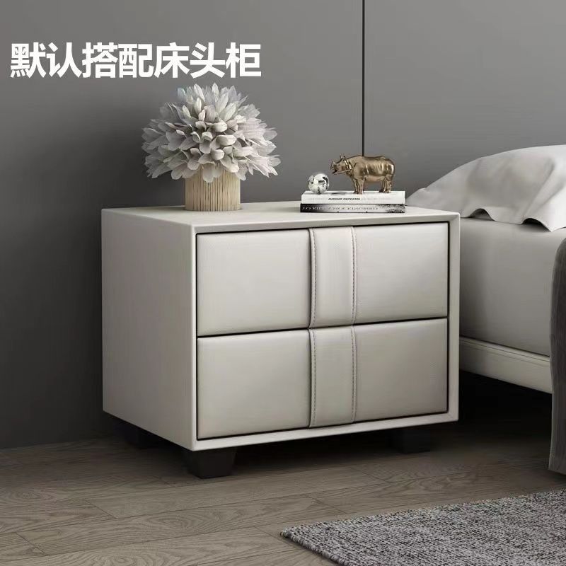 • -침실 미니멀리스트 가죽 침대 + 캐비닛 1개