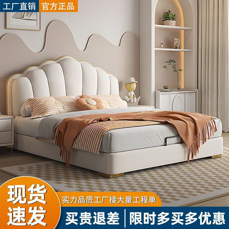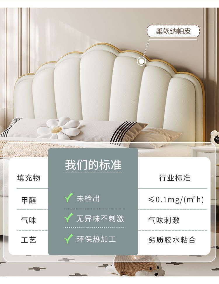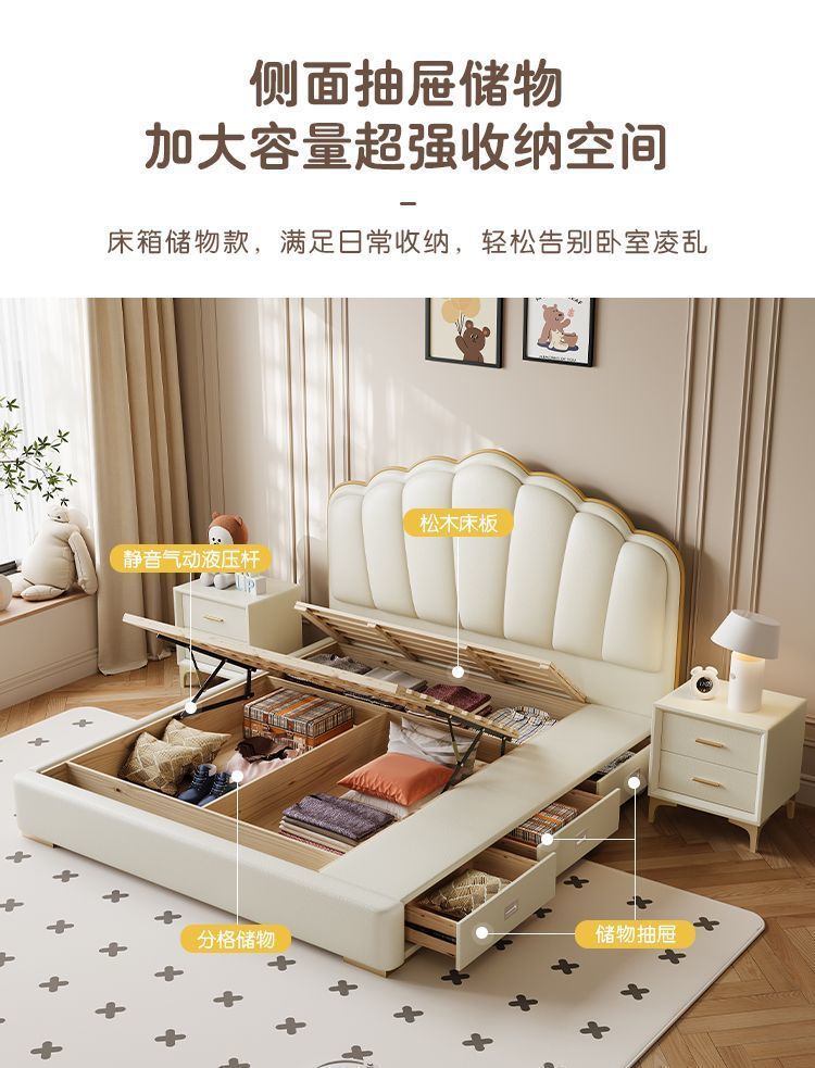 어린이 침대, 천연 가죽 침대, 심플 모던 더블 침대, 클래식 꽃잎 침대, 크림 라이트 럭셔리 인터넷 연예인 공주 침대 수납 침대스토어 가기