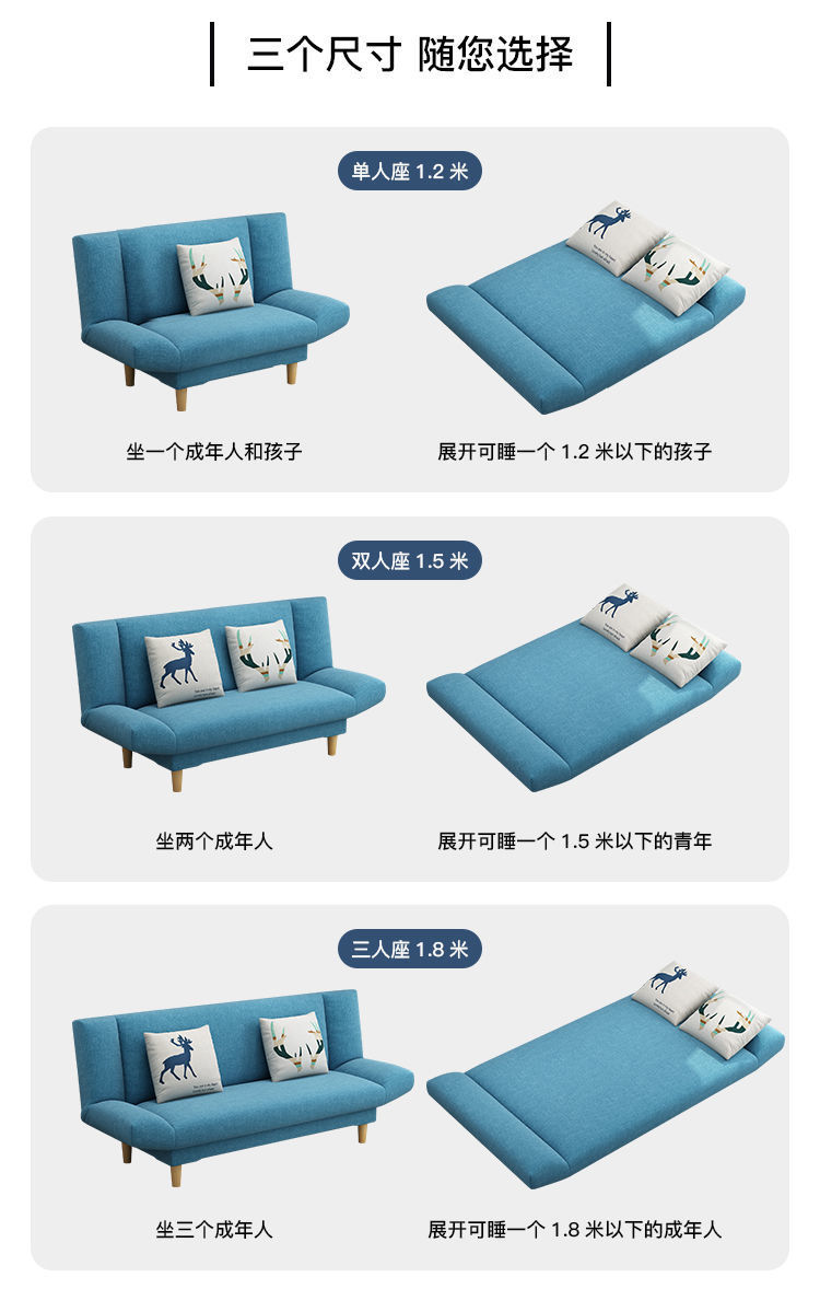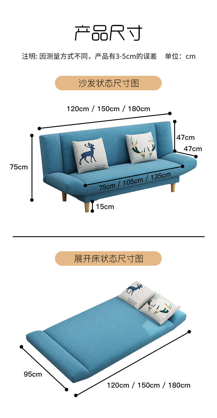 게으른 패브릭 소파 임대 거실 작은 아파트 접이식 소파 침대 이중 목적 침실 아파트 간단한 jω스토어 가기
