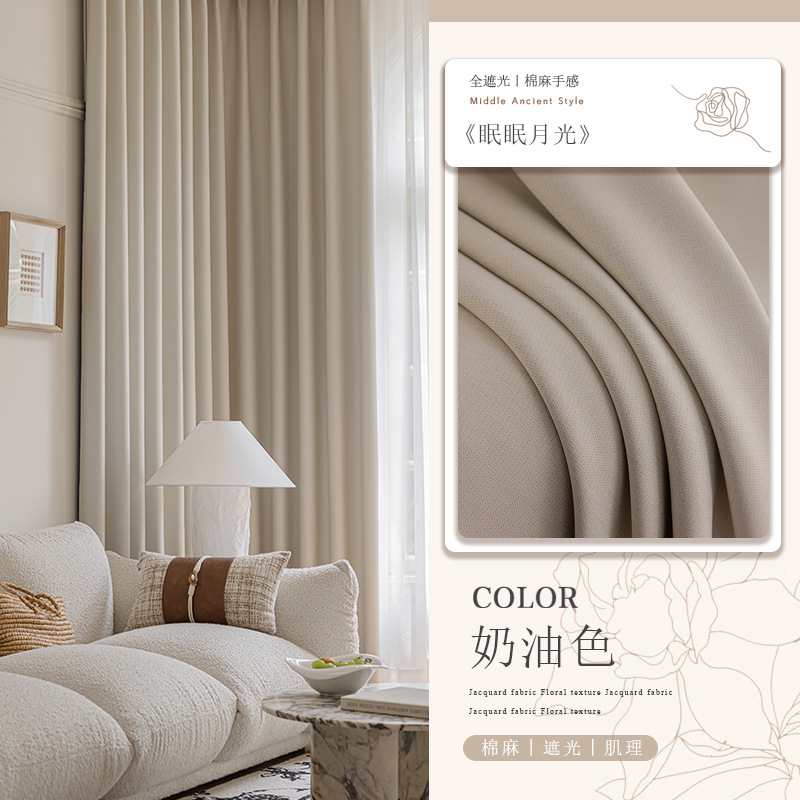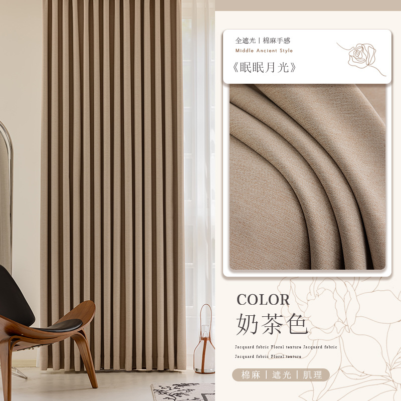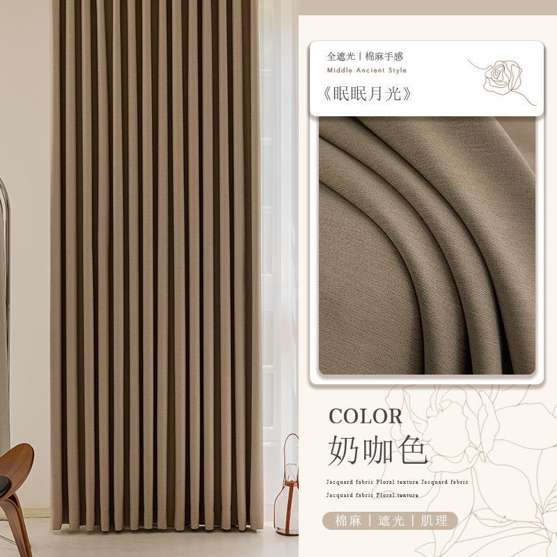 침실용 완전 암막 커튼, 마스터 침실 2025 새로운 스타일의 차양, 단열 및 자외선 차단, 100 불투명 면 및 린넨 느낌, 고급 감각