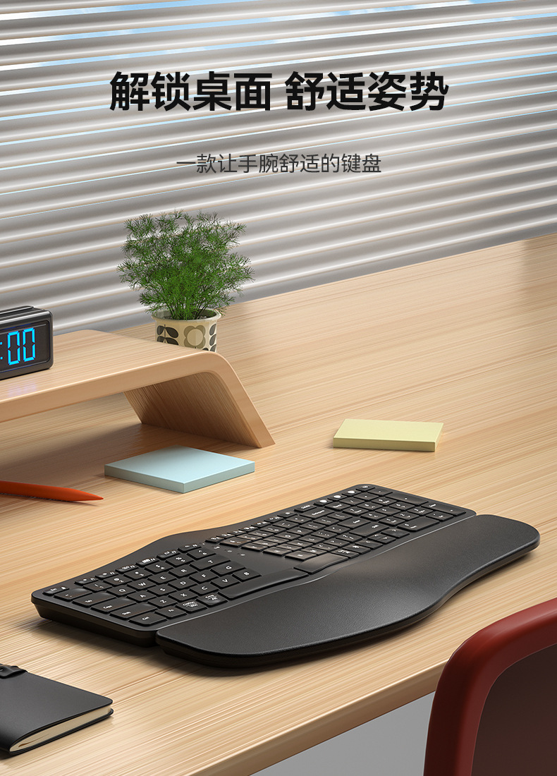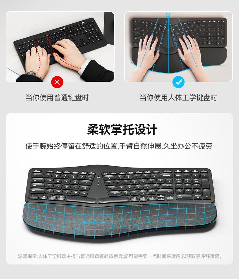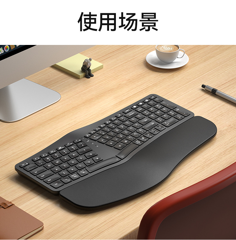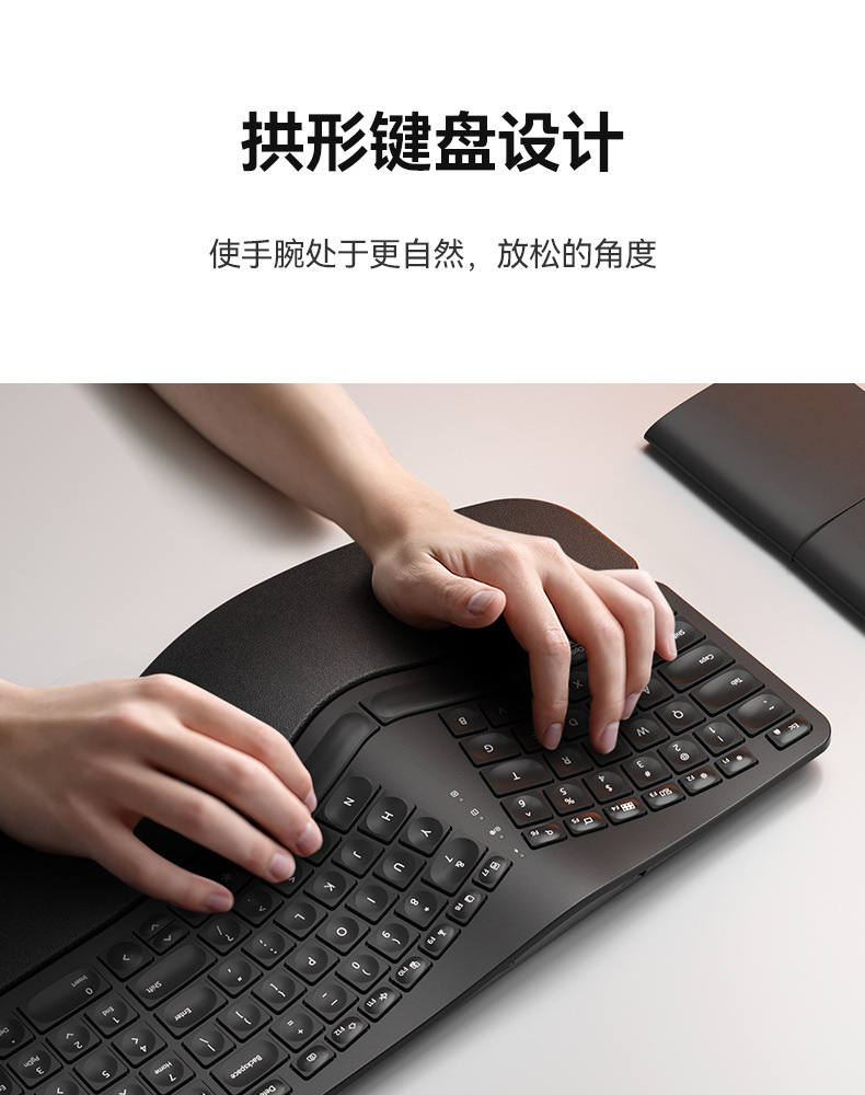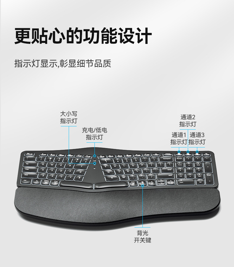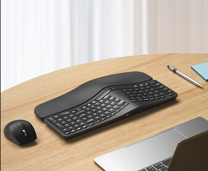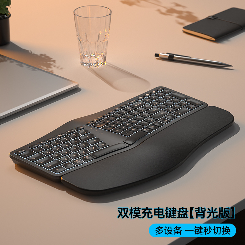 BOW Hangshi HD315B 인체공학적 백라이트 충전 듀얼 모드 Bluetooth + 2.4G 손목 보호 키보드