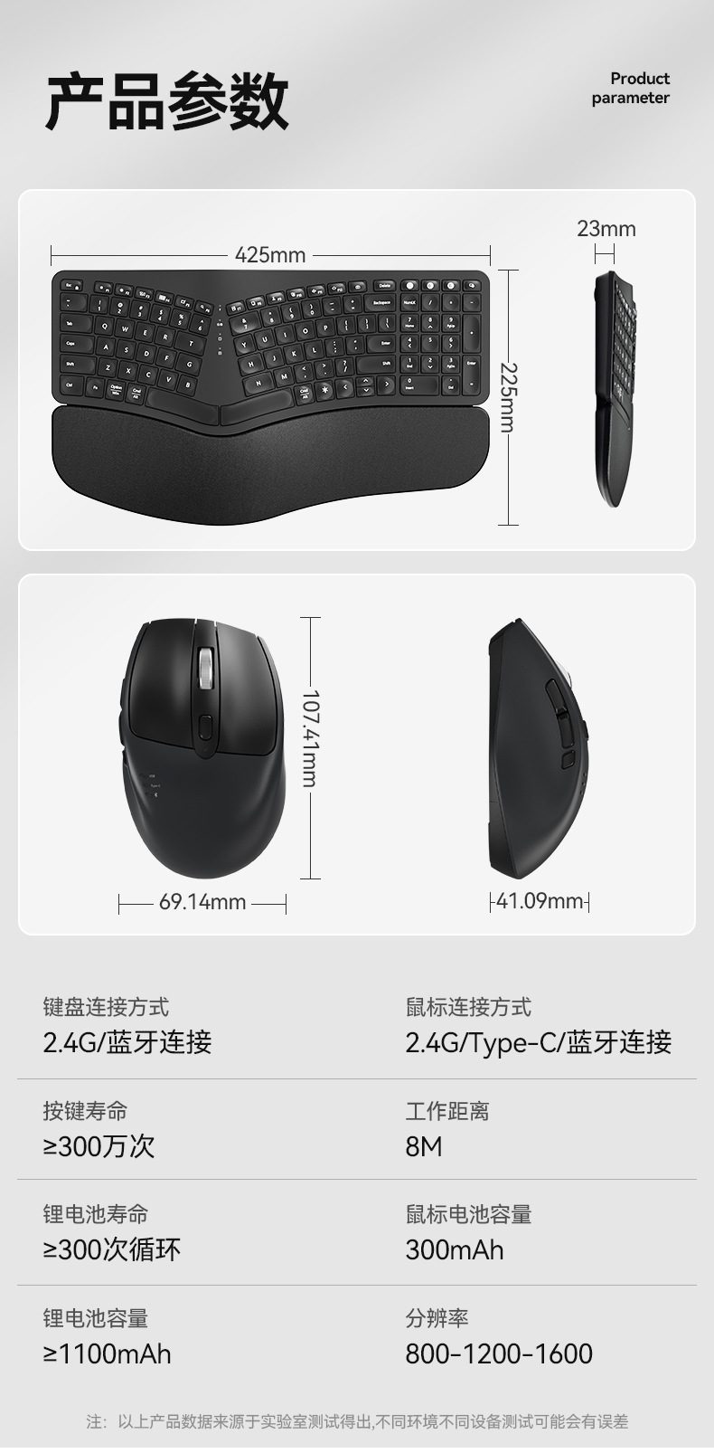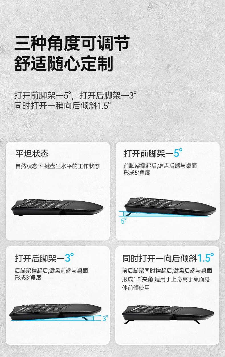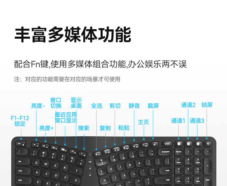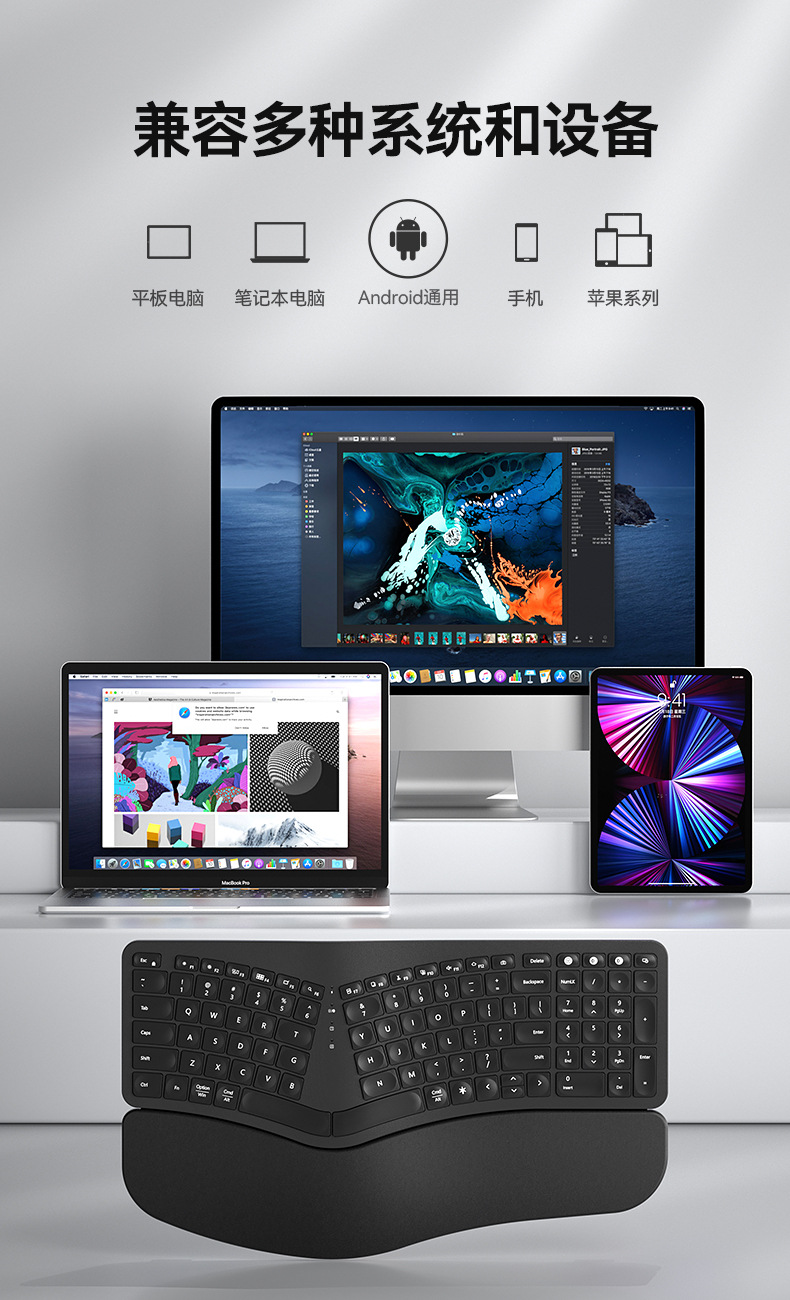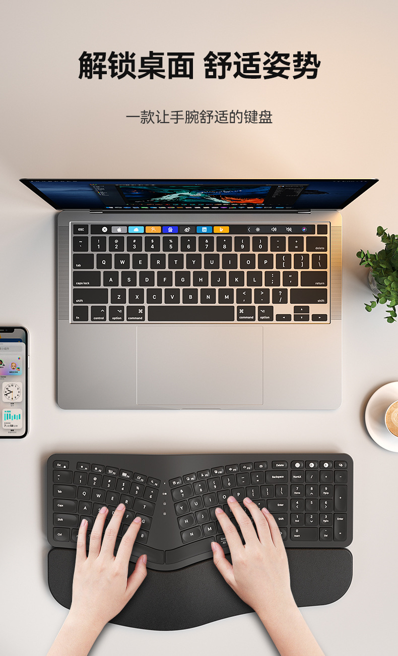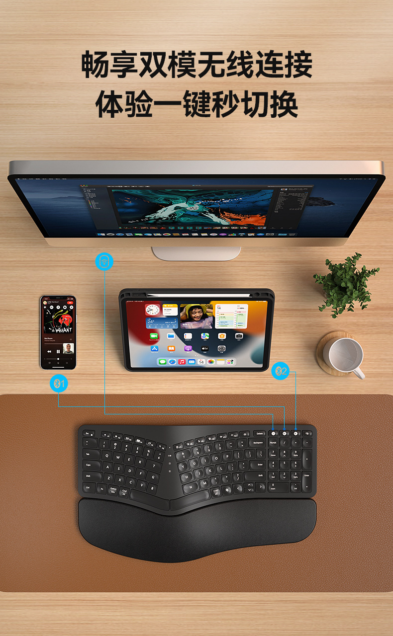 BOW Hangshi HD315B 인체공학적 백라이트 충전 듀얼 모드 Bluetooth + 2.4G 손목 보호 키보드