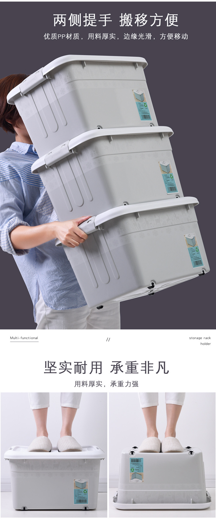 바퀴가 달린 플라스틱 정리함 보관함, 손잡이가 두꺼워진 이불 보관함, 바퀴가 달린 옷 및 장난감 보관함스토어 가기