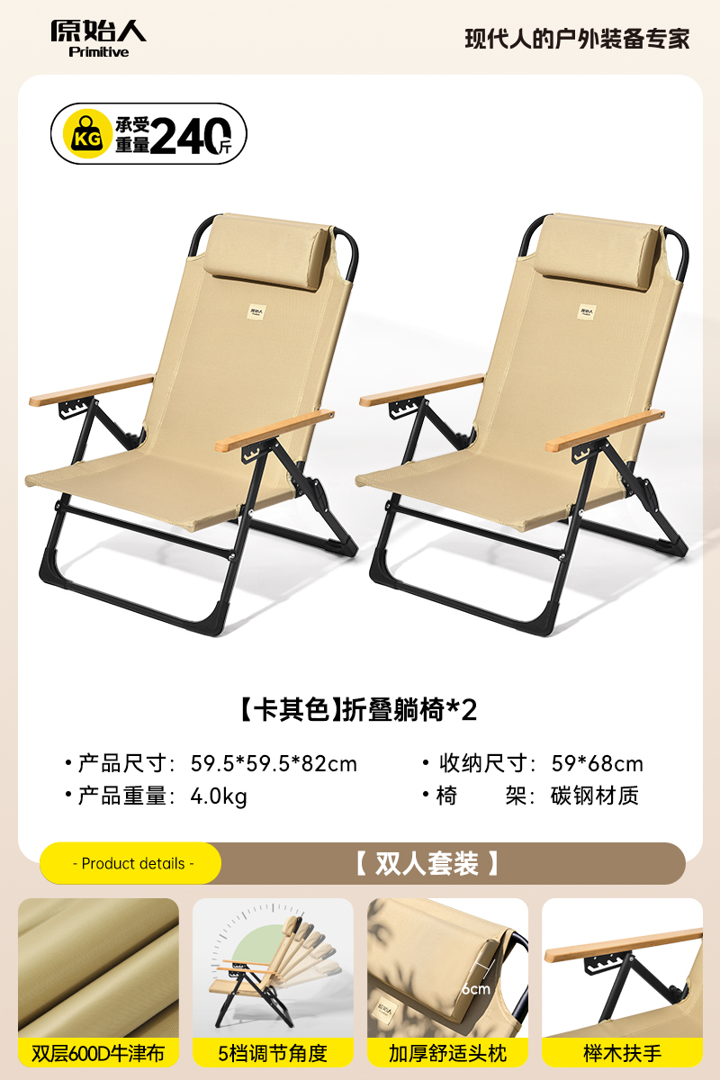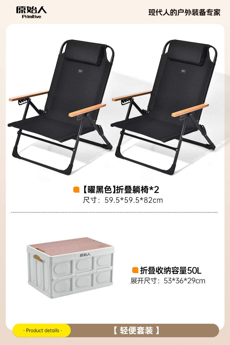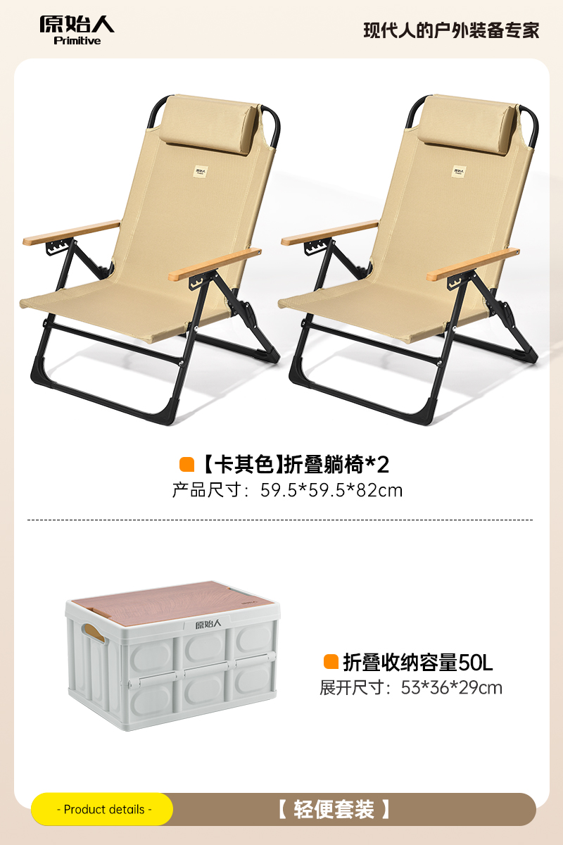 • 카키 라운지 의자*2+50L 접이식 보관함
