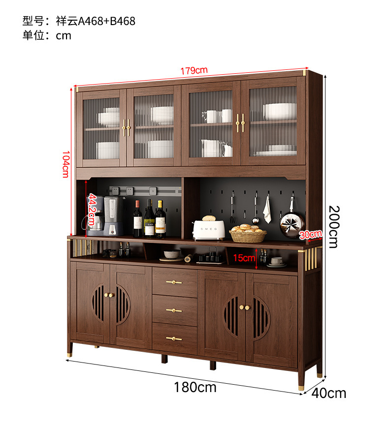 새로운 중국 스타일의 찬장, 높은 캐비닛, 벽걸이형 와인 캐비닛, 거실, 가정용 단단한 나무 색상 주방 찬장, 보관 캐비닛
