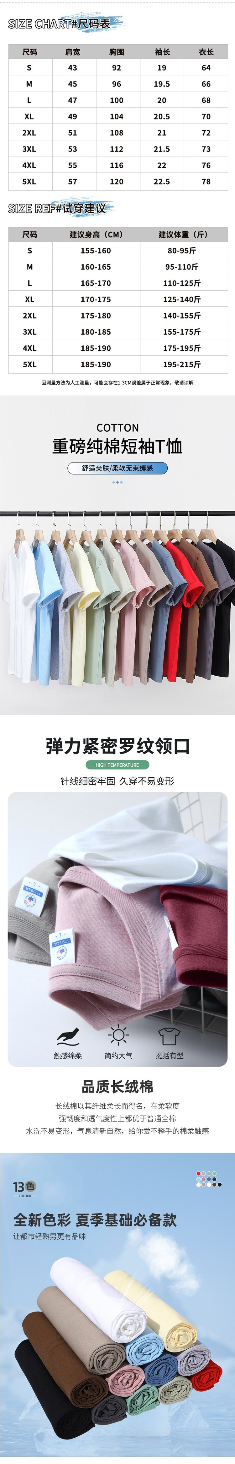 신장면 헤비급 반팔 티셔츠 남성 여름 루즈 솔리드 컬러 반팔 티셔츠 캐주얼 다용도 탑 T 트렌드