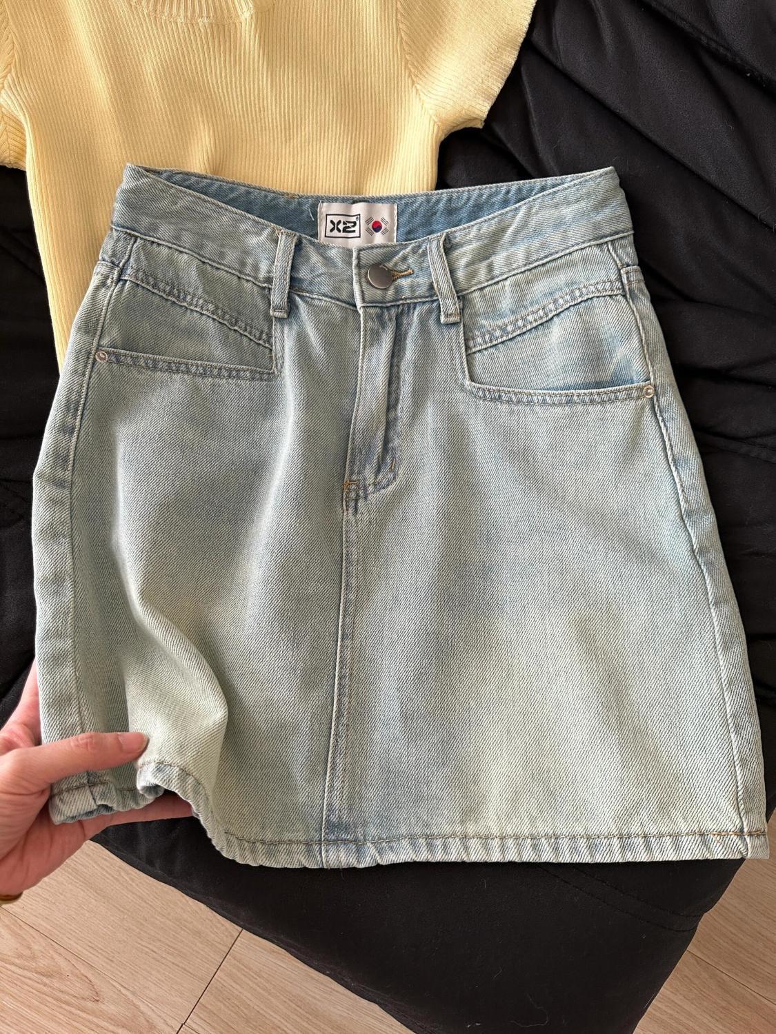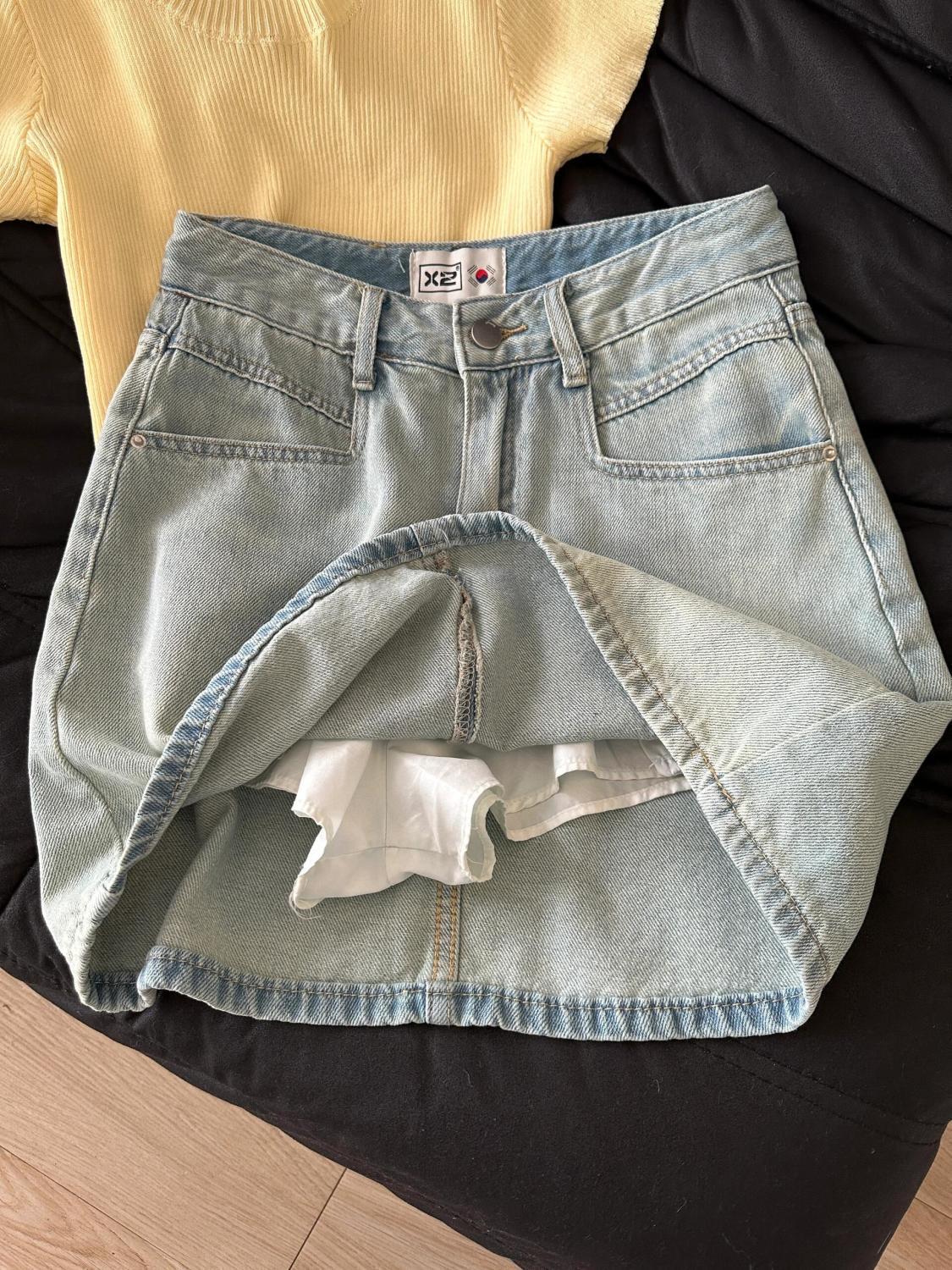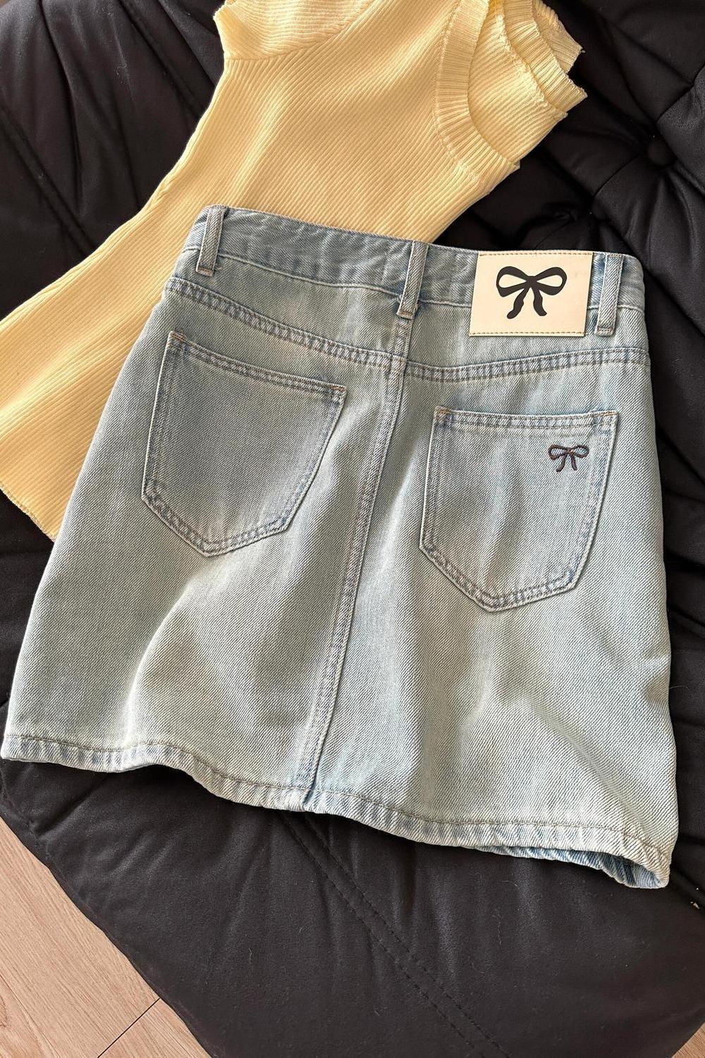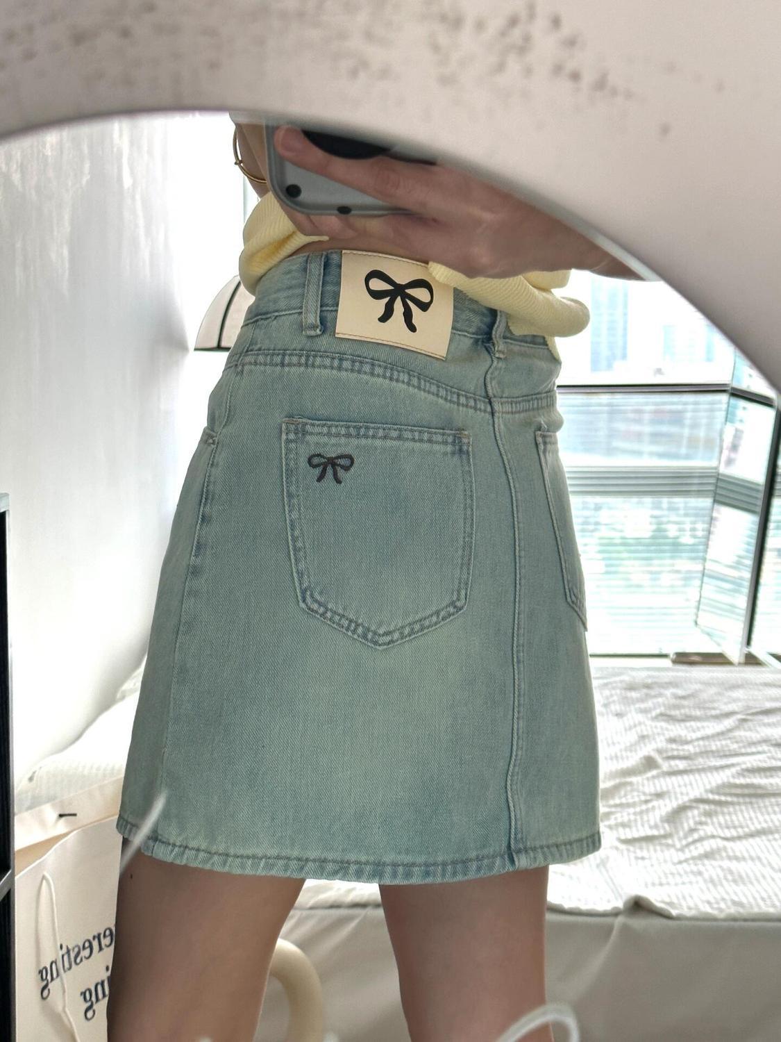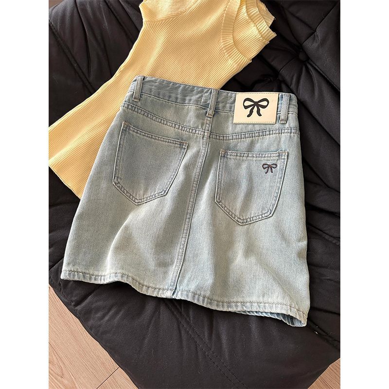 미국 복고풍 미니 스커트, 엉덩이가 보이는 자수 리본 슬림 스커트, 여름 스커트, 데님 핫걸스토어 가기