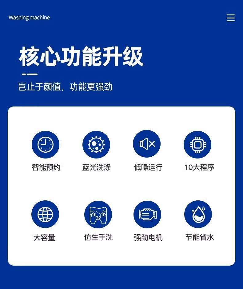 • 10KG 지능형 공기 건조 + 블루라이트 세척 + 강력한 오염 제거
