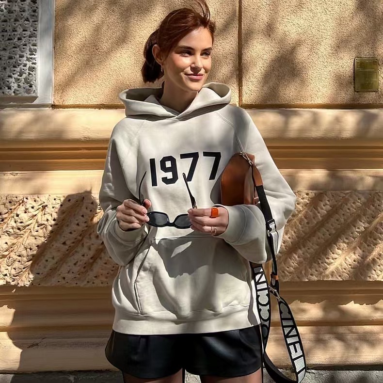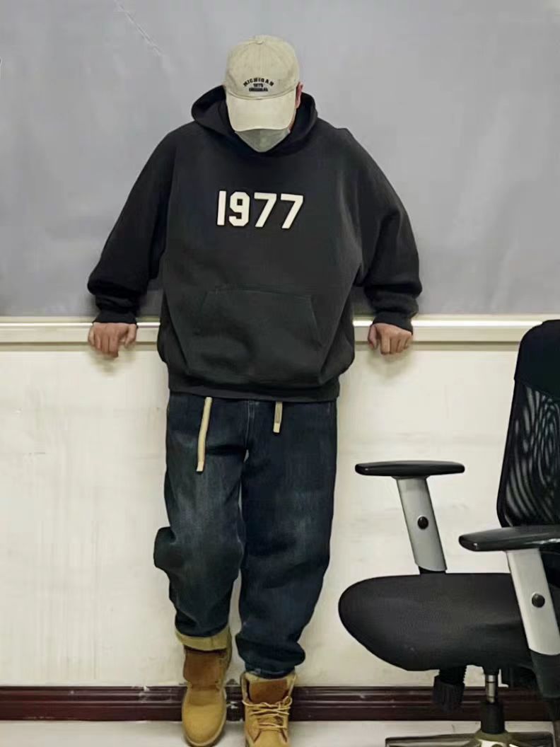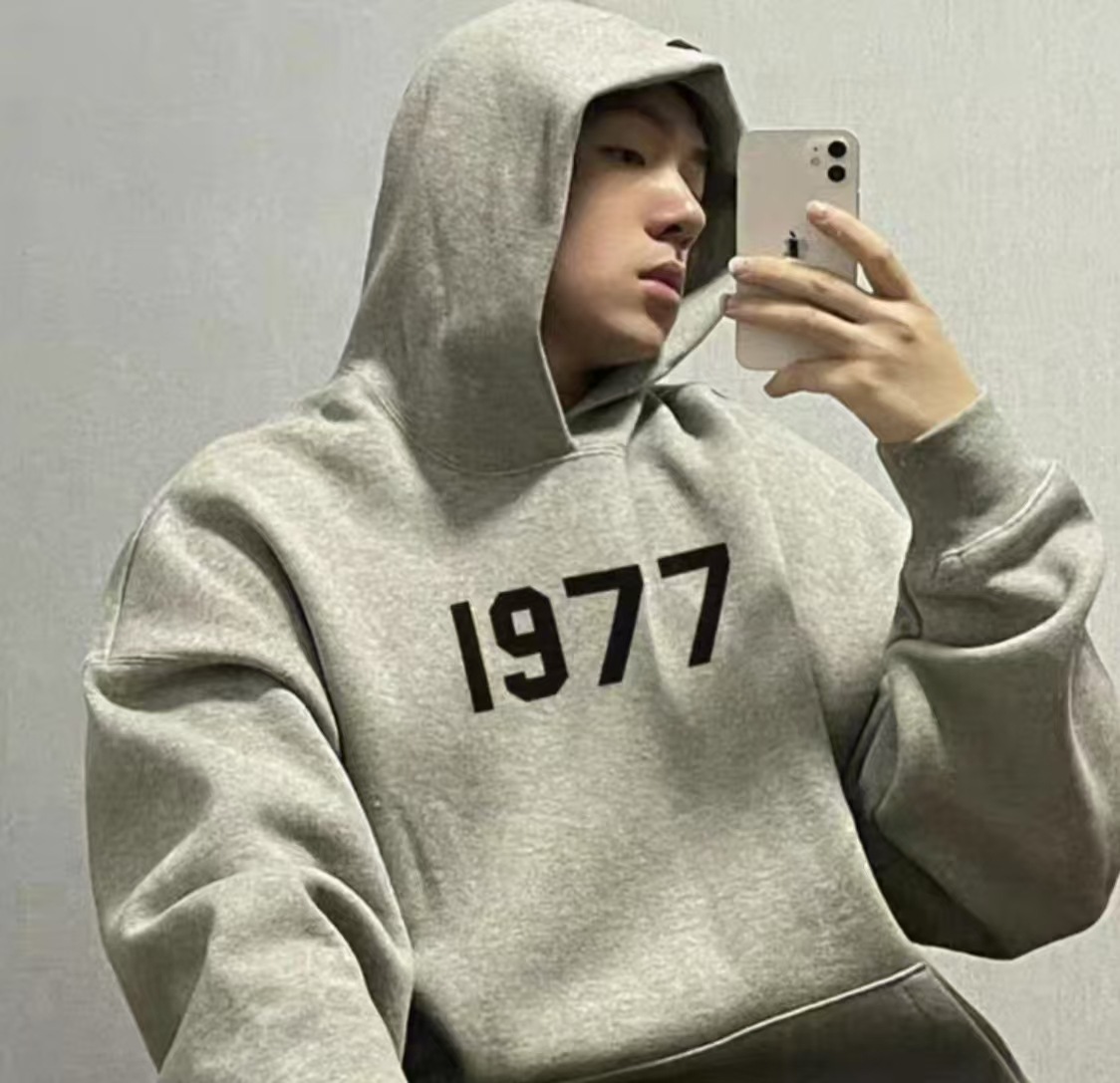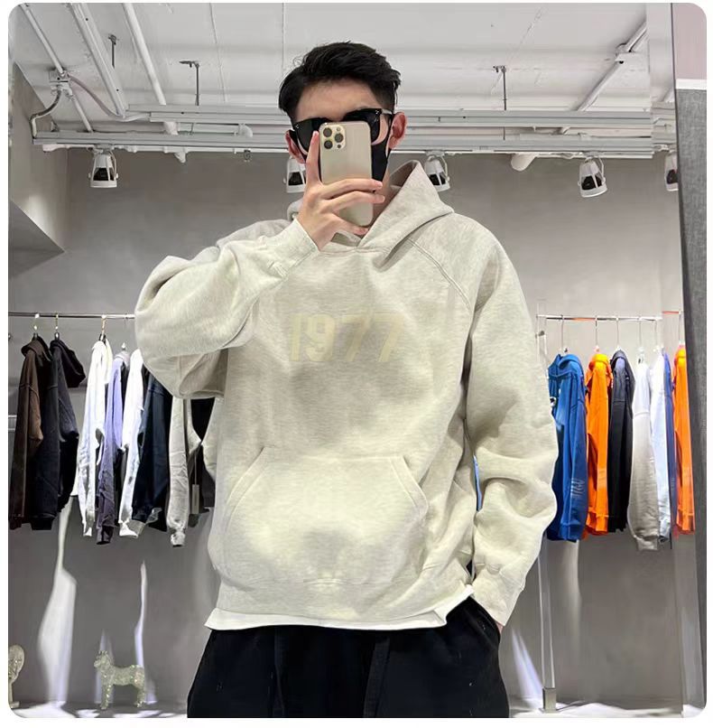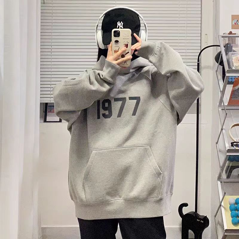 FOG 이중 라인 ESSENTIALS 하이 스트리트 1977 아메리칸 스타일 얇은 벨벳 커플 후드티 남녀 공용 루즈핏 크로스보더스토어 가기