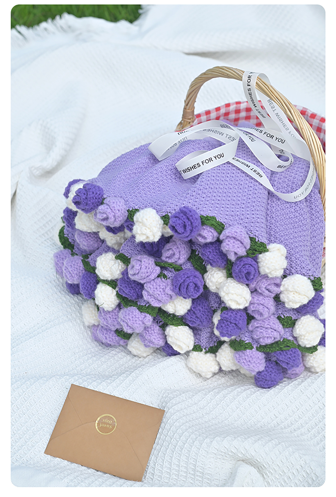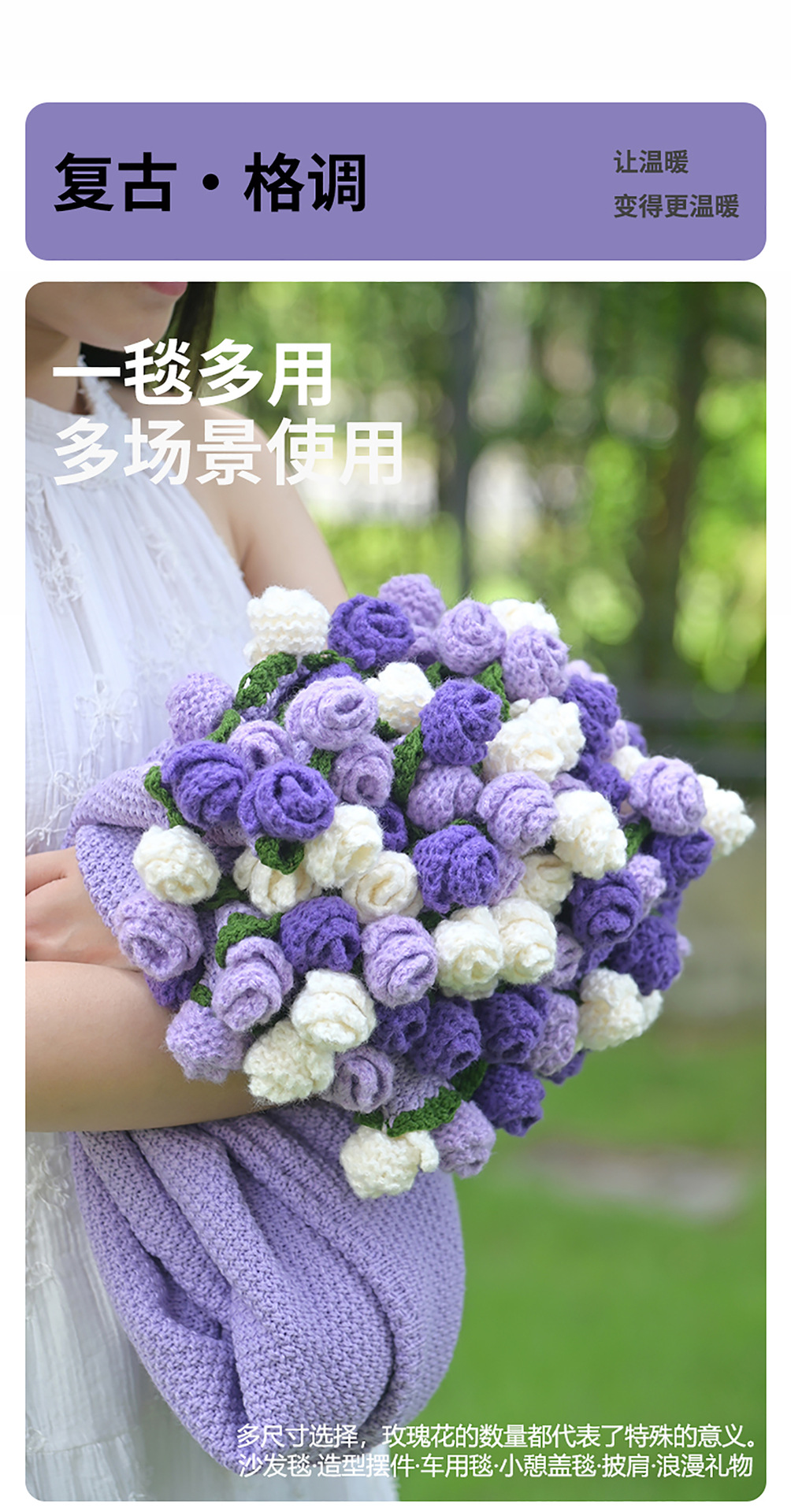 [준비된 제품] 여자친구, 남자친구, 절친을 위한 보라색 장미 꽃다발 담요, 고급 생일 및 발렌타인 데이 선물