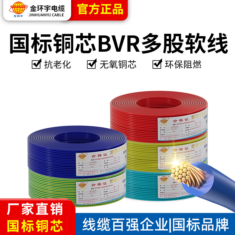 Jinhuanyu 국가 표준 구리 코어 난연성 BVR 주택 개선 전선 1.5 2.5 4 6 평방 단일 코어 멀티 스트랜드 연선스토어 가기