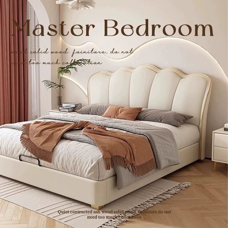어린이 침대 소녀 프랑스 꽃잎 공주 침대 가죽 침대 크림 스타일 1.8m 더블 침대 1.5m 쉘 침대
