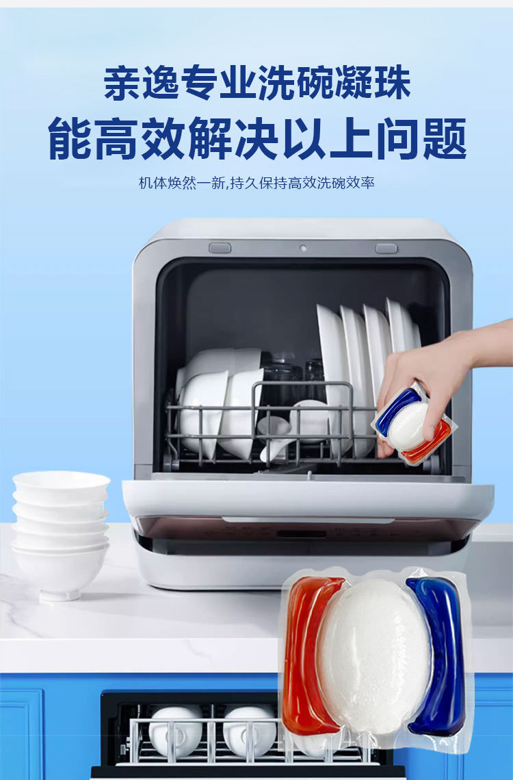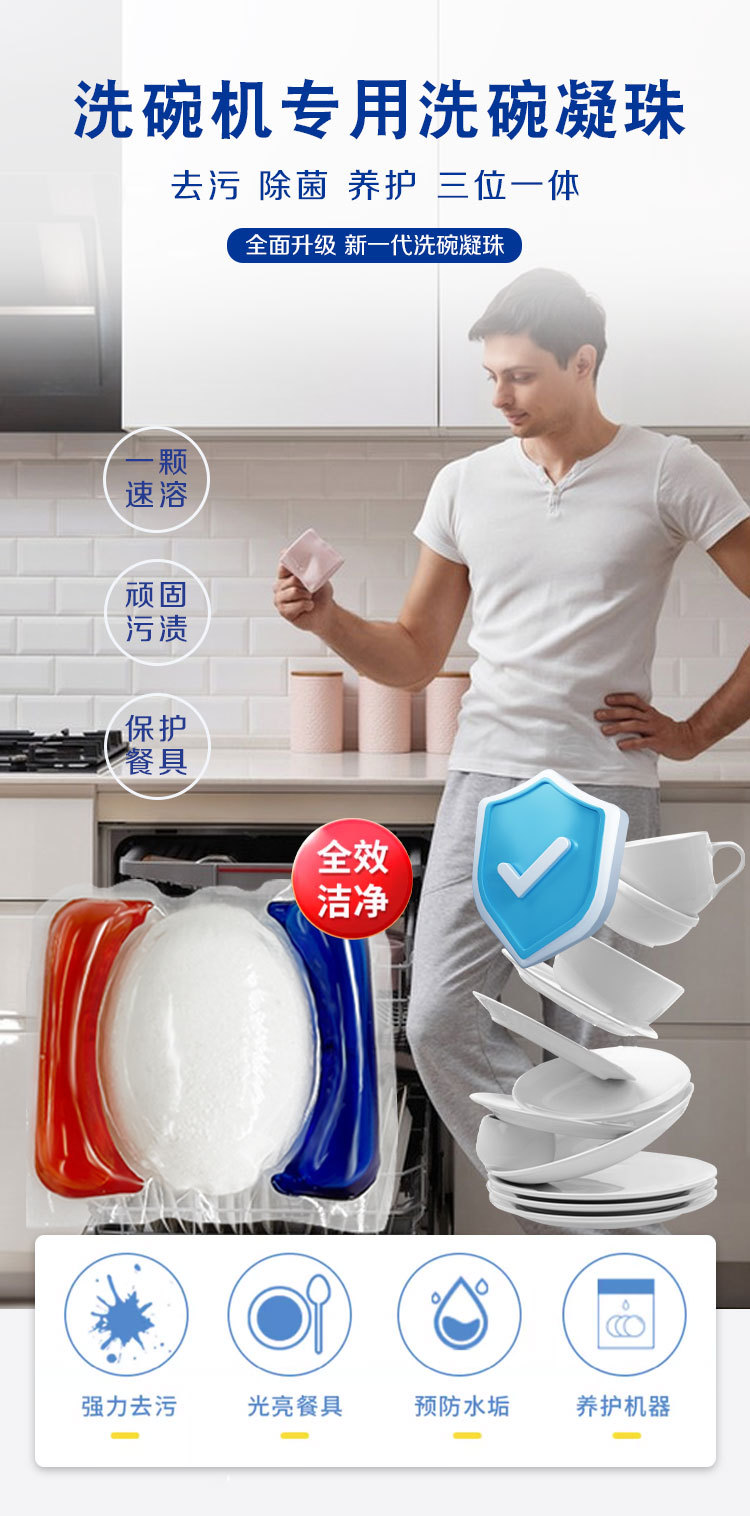 국경 간 식기 세척기 특수 3-in-1 비드 가정용 세제 연수 소금 청소 정제 발포성 정제 식기 세척 블록
