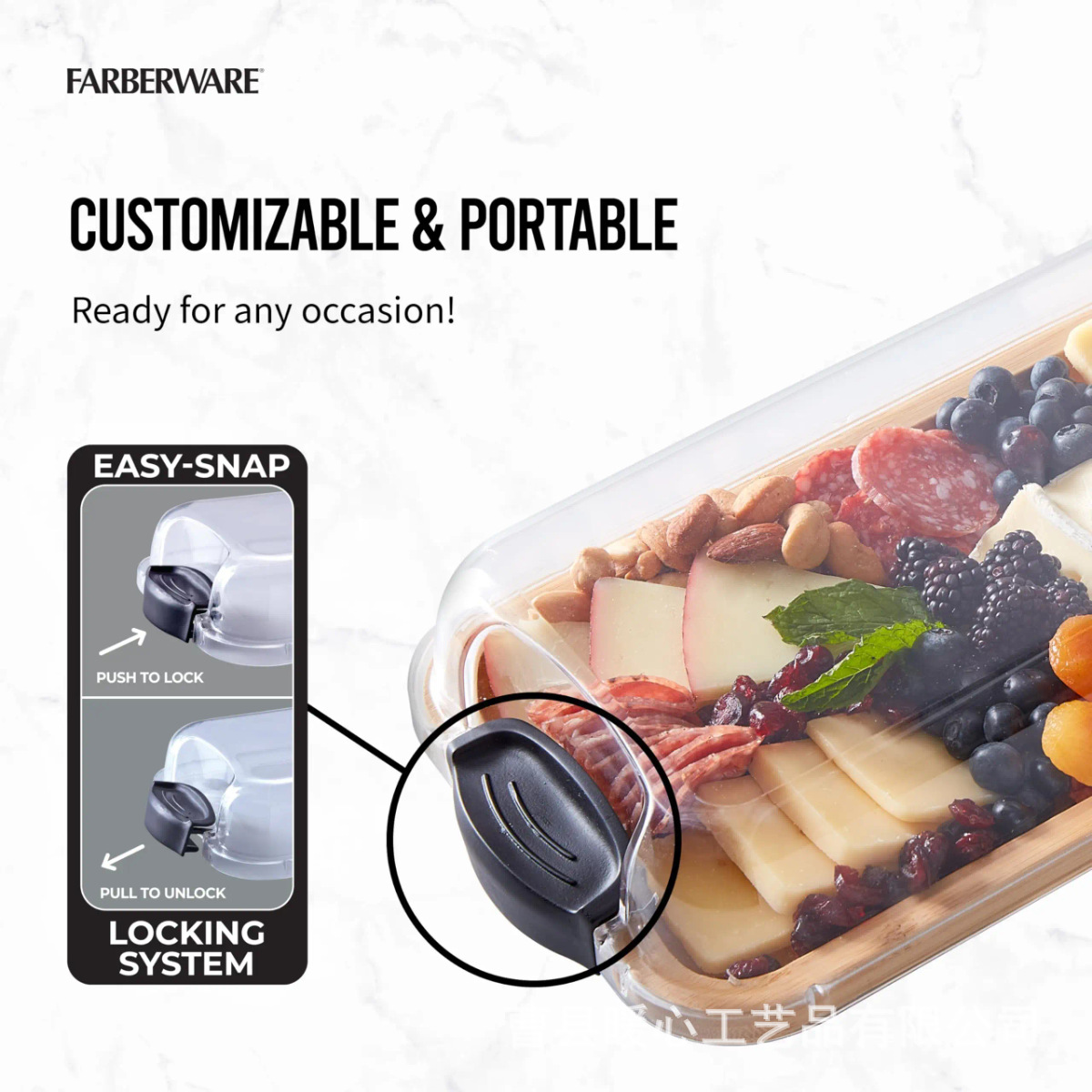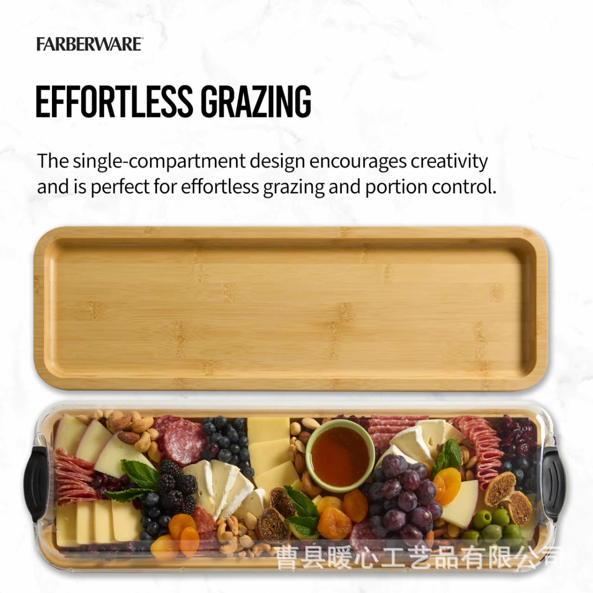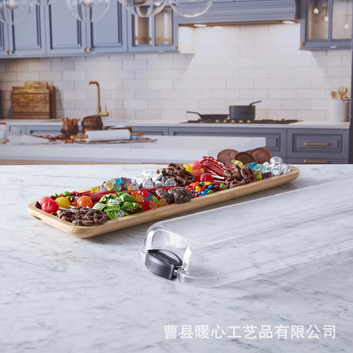 아크릴 투명 뚜껑이 있는 단단한 나무 델리 트레이, 과일 샐러드 트레이, 홈 파티 스테이크 치즈 서빙 트레이