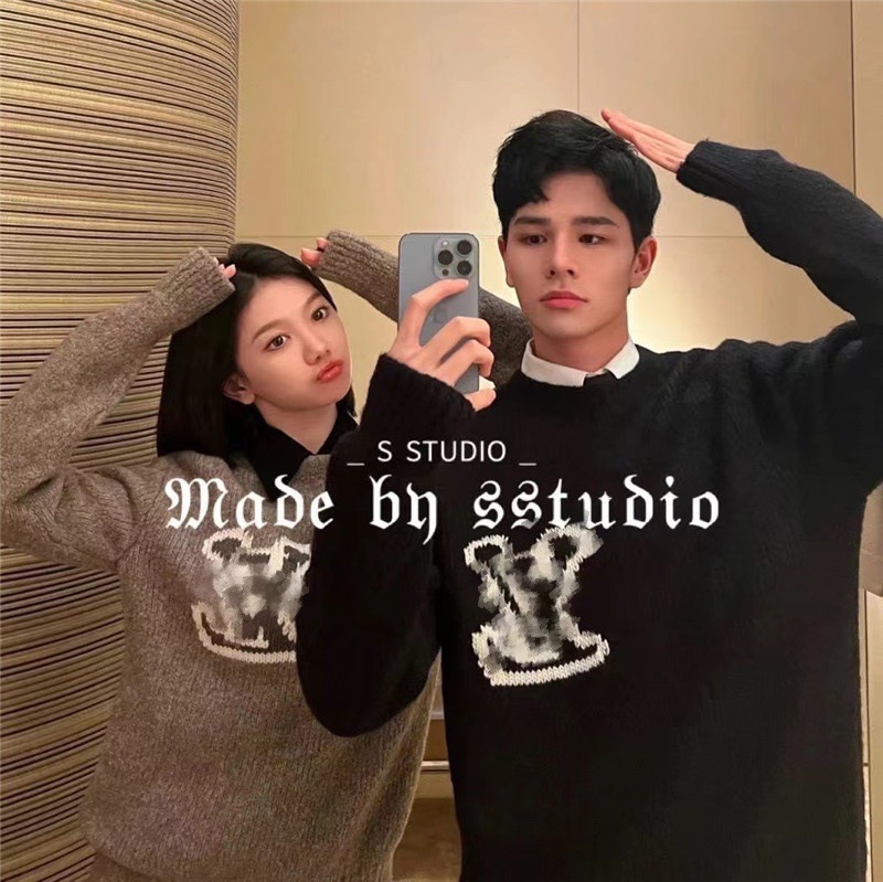 크로스보더 올바른 버전 Donkey L의 스웨터 라운드 넥 가을, 겨울 남성과 여성을 위한 새로운 자카드 풀오버 게으른 스타일 스웨터스토어 가기