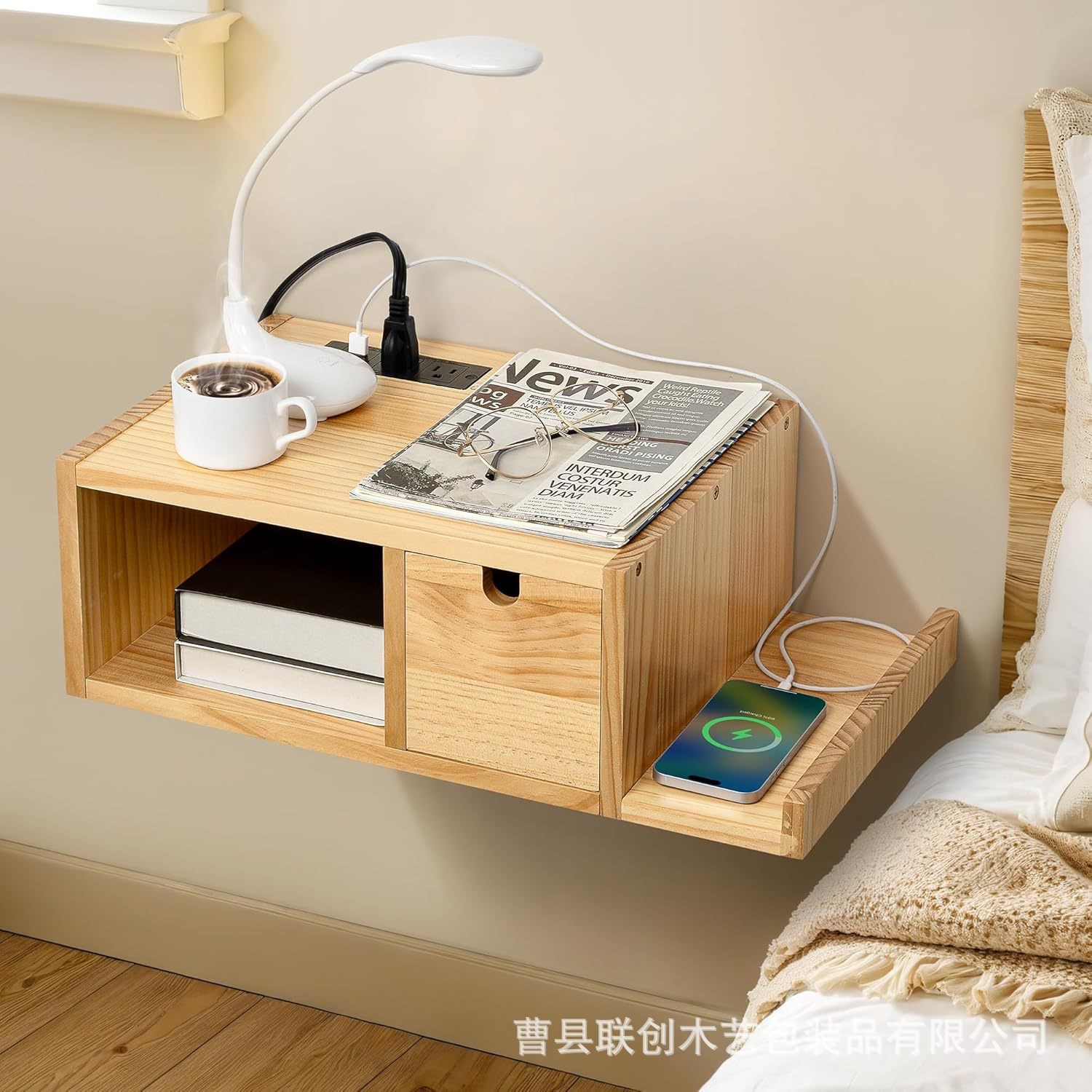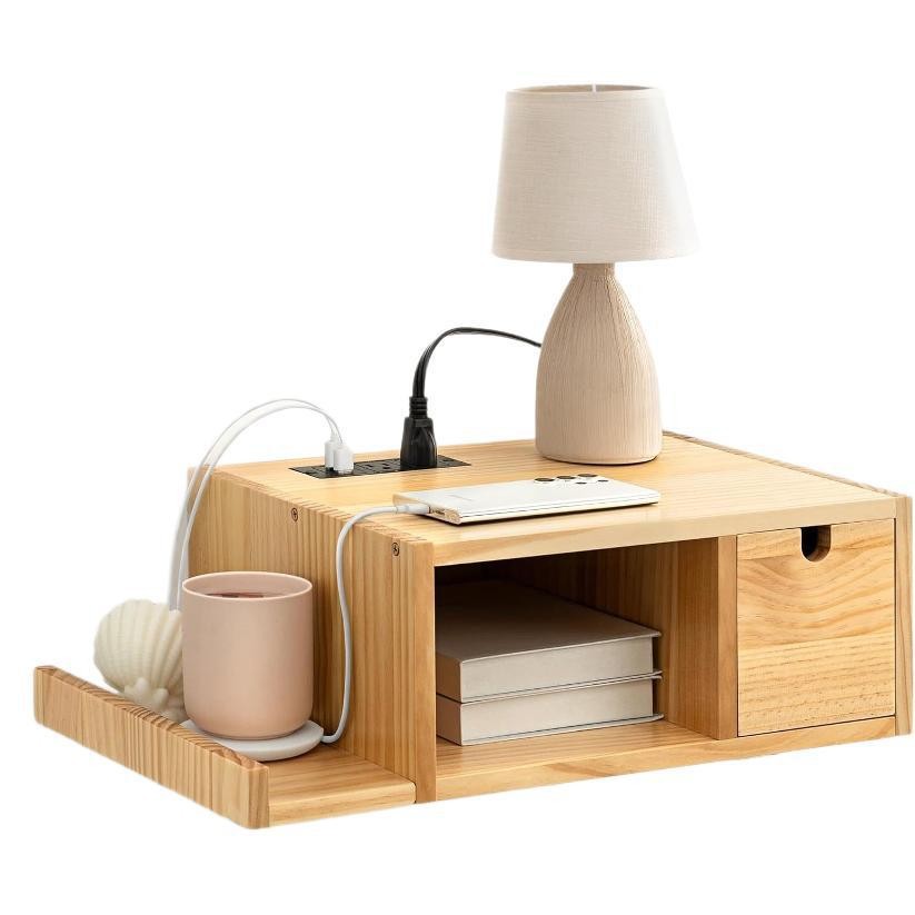 단단한 나무 벽걸이 형 침대 옆 보관함 벽걸이 형 잔해물 보관함 휴대 전화 테이블 램프 보관함 책 보관함