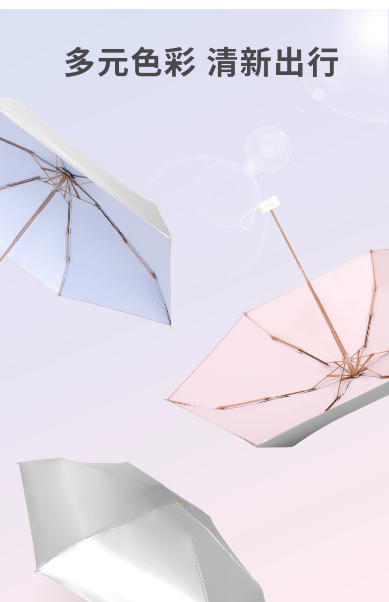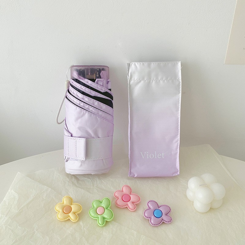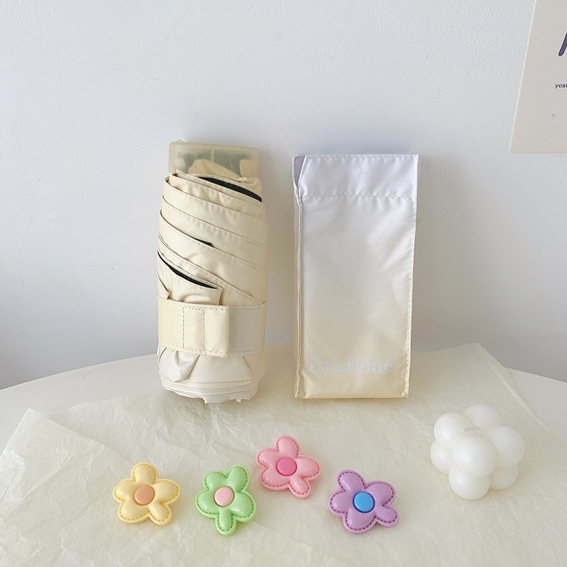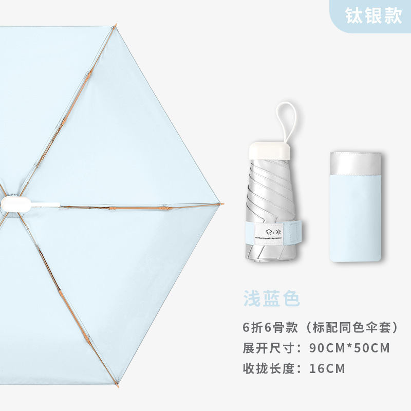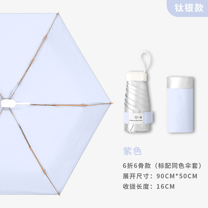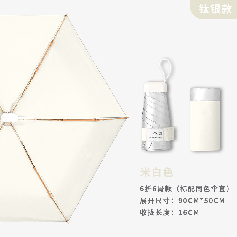 티타늄 실버 고급 여성용 태양 우산, 자외선 차단 및 자외선 차단, 미니 휴대용 태양 우산, 이중 용도 40% off 카드 차양