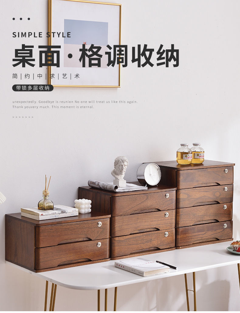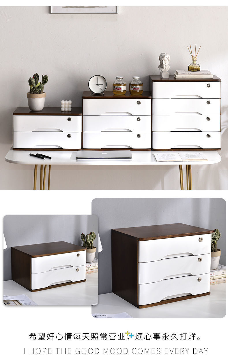 잠금 가능한 단단한 나무 데스크탑 보관함 서랍형 다층 데스크탑 보관 캐비닛 잡화 보관 캐비닛 사무실 정리 상자스토어 가기