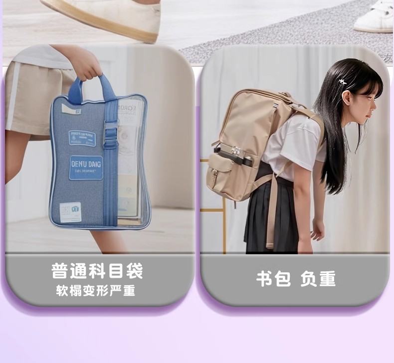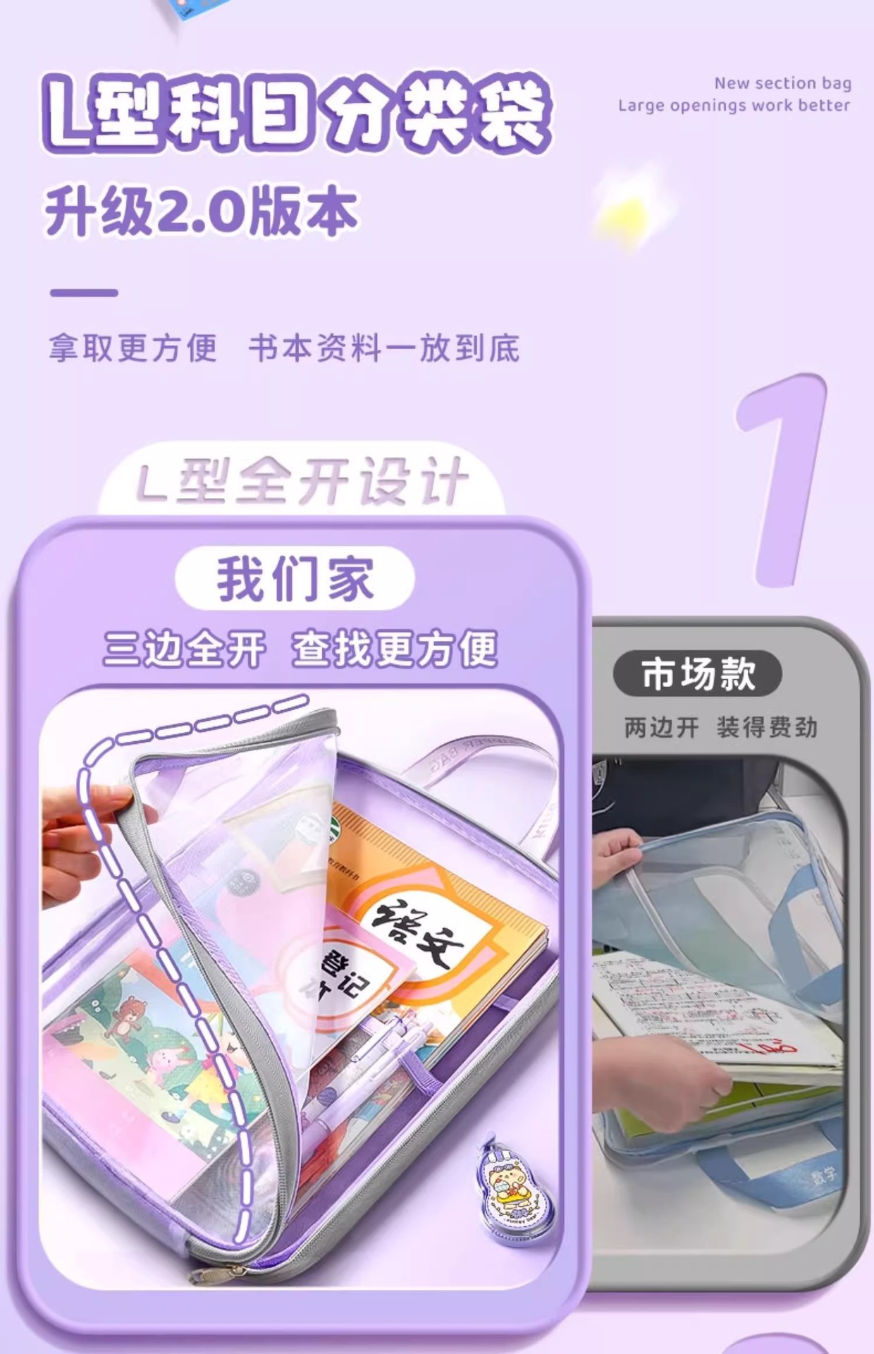 L자형 과목분류가방, 휴대용 투명파일가방, 지퍼메쉬, 대형개구부, 학생용 책가방, 수험특집