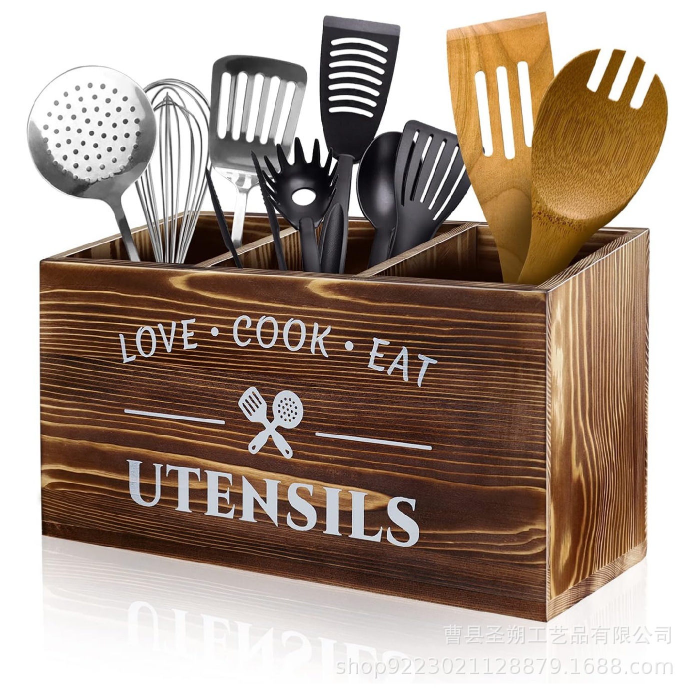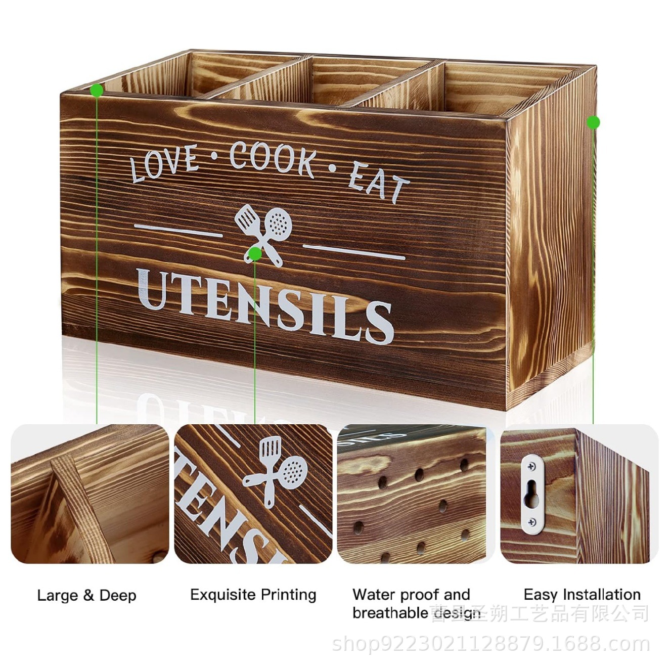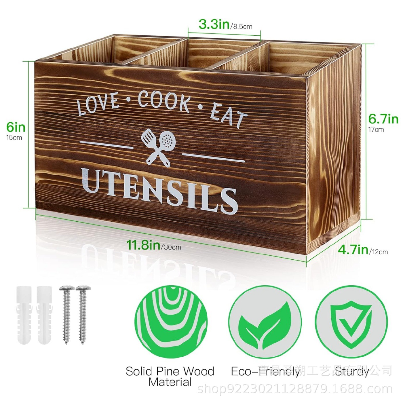 나무 데스크탑 보관 상자 복고풍 가정용 주방 식기 보관 상자 칼, 포크 및 스푼 분할 형식 보관 상자스토어 가기