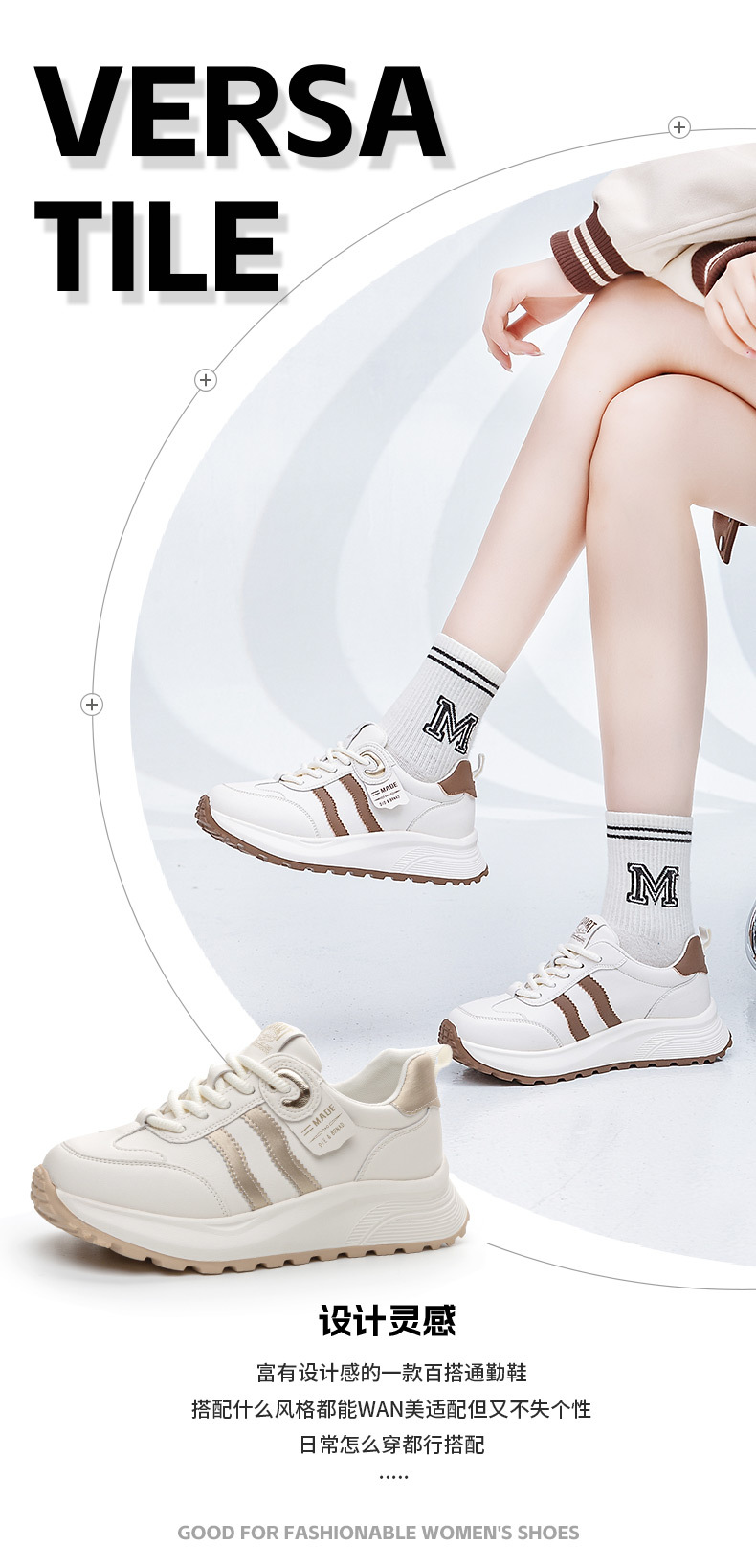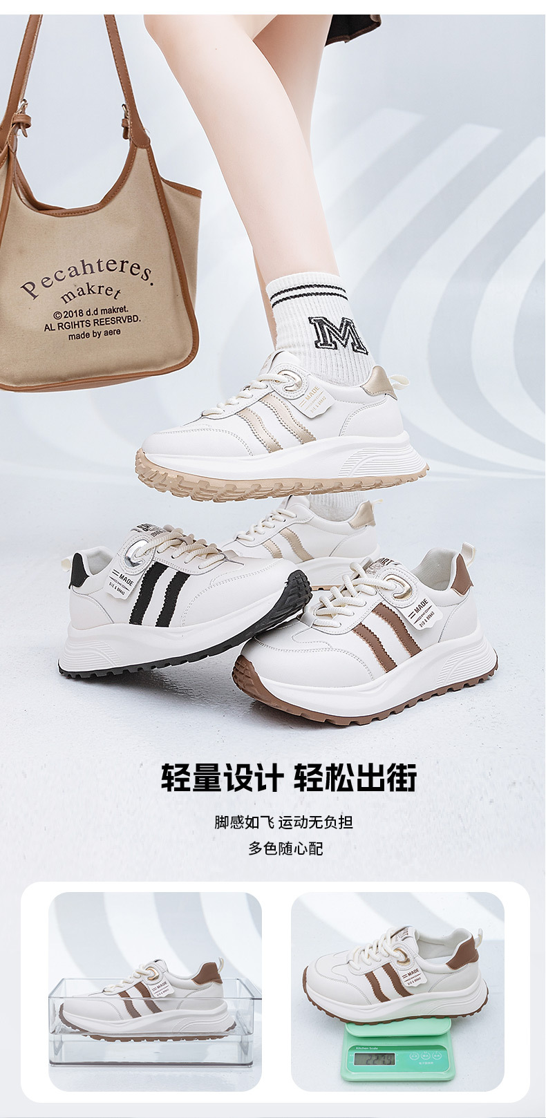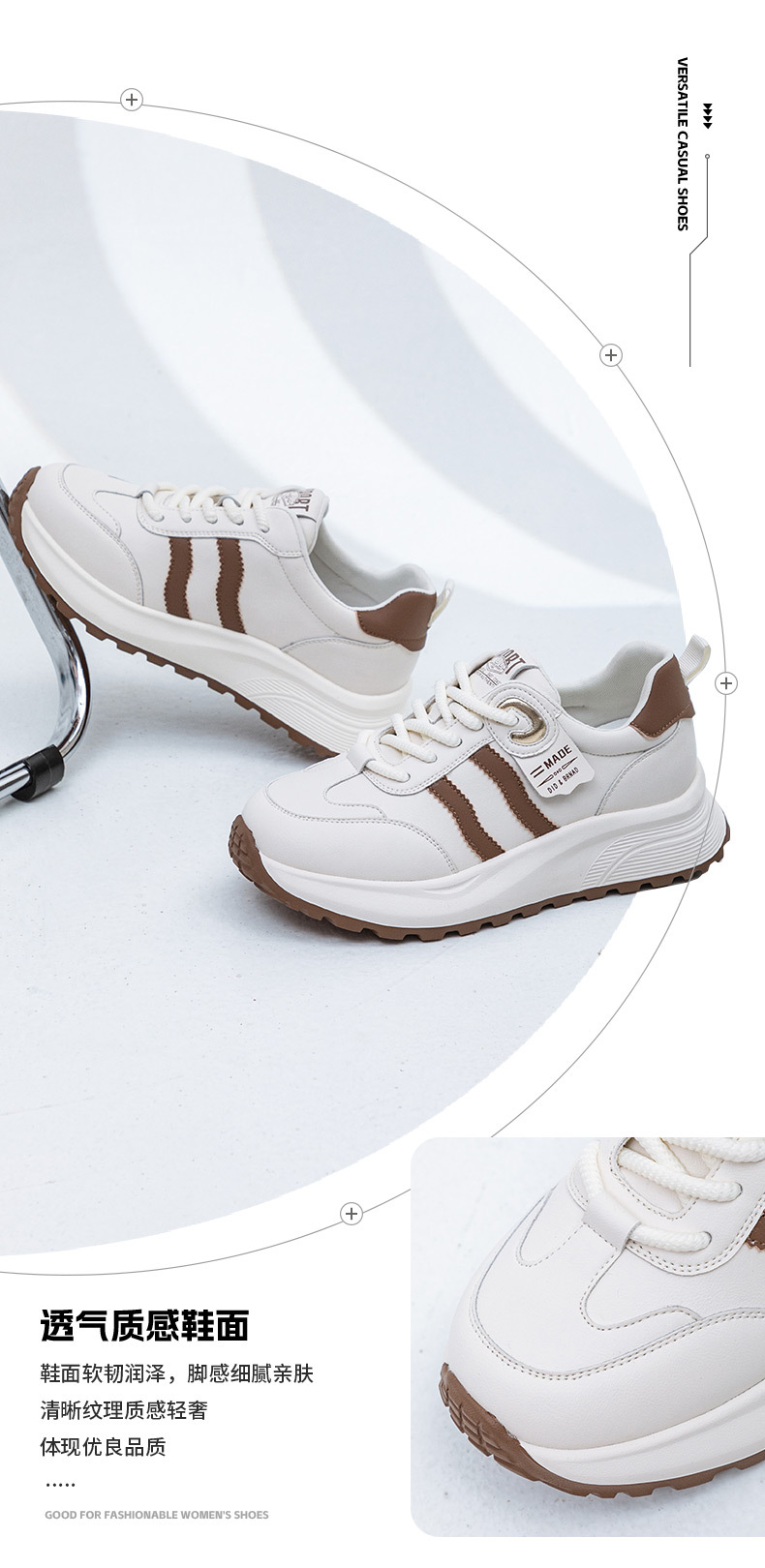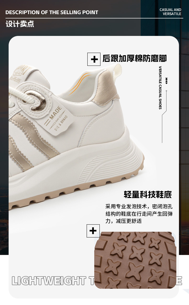 큰 사이즈 여성 신발 41 ~ 43 Ahgan 흰색 신발 여성 2025 봄과 가을 새로운 다목적 경량 캐주얼 스포츠 신발