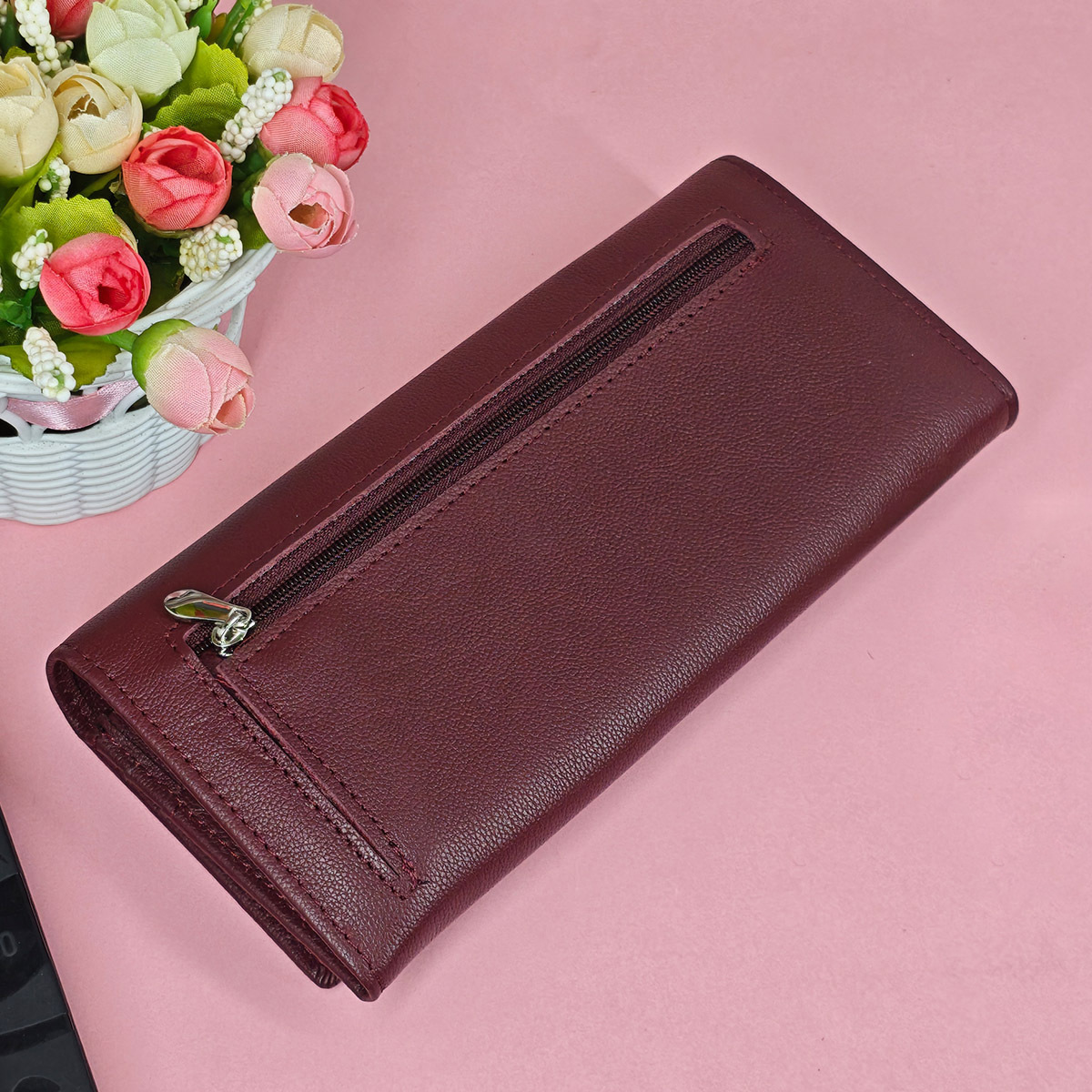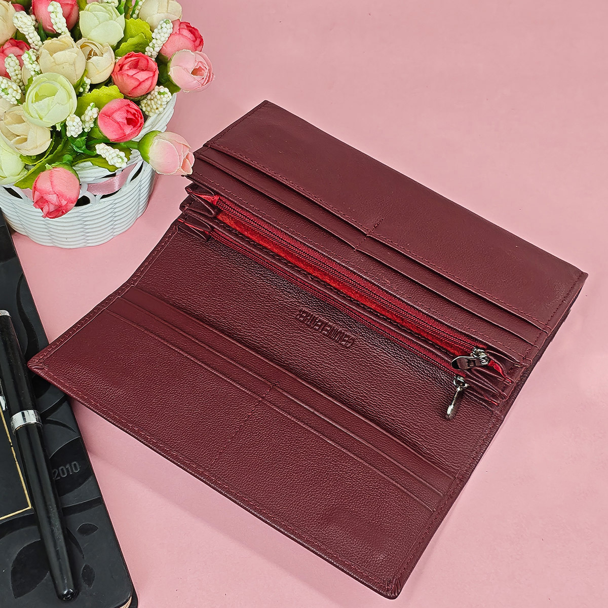 头层牛皮磁扣长款钱包 OZON WB热卖钱夹 女士钱包