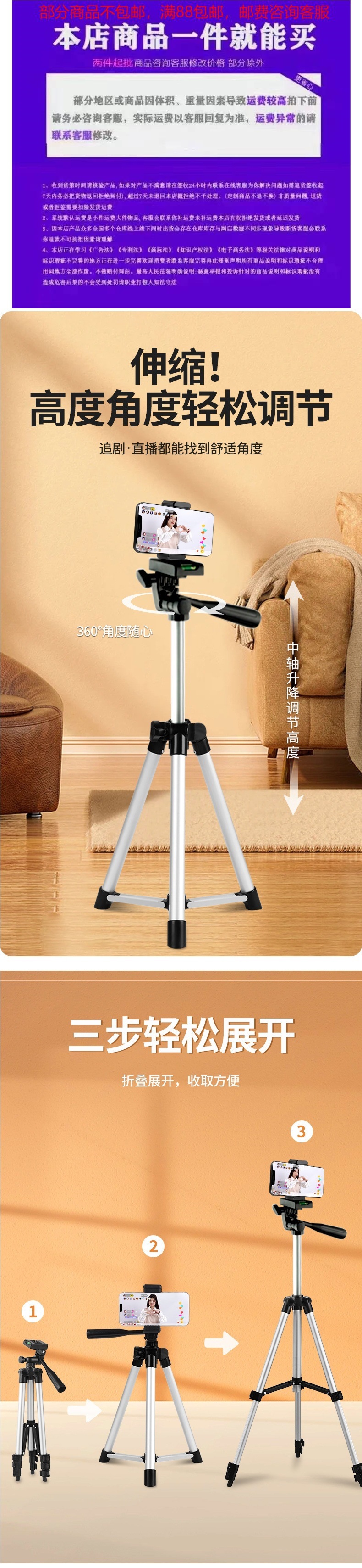 휴대폰 홀더, 라이브 방송 삼각대, 리프팅 앵커, 인터넷 연예인 데스크탑 게으른 홀더, 블루투스 셀카봉 비디오에 적합